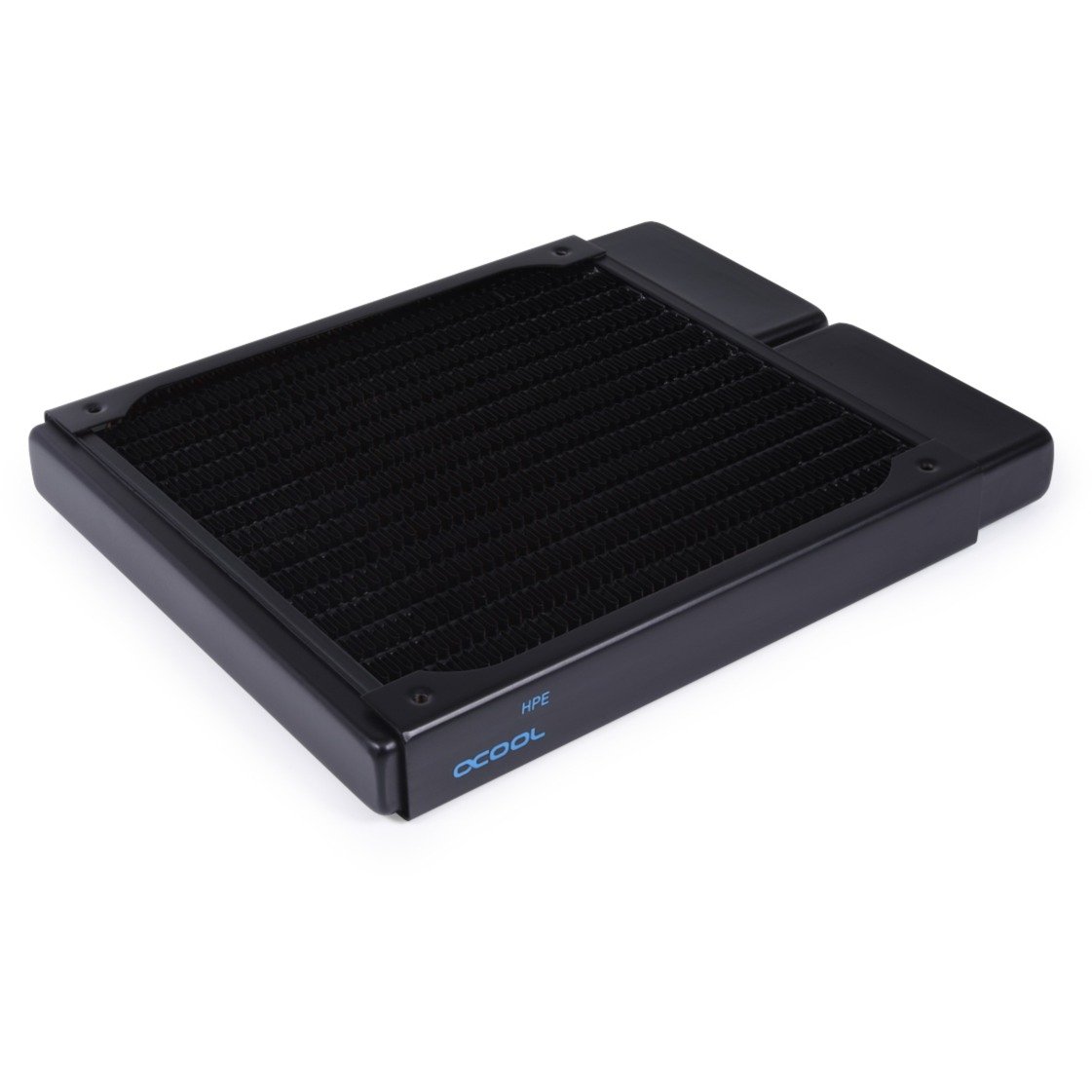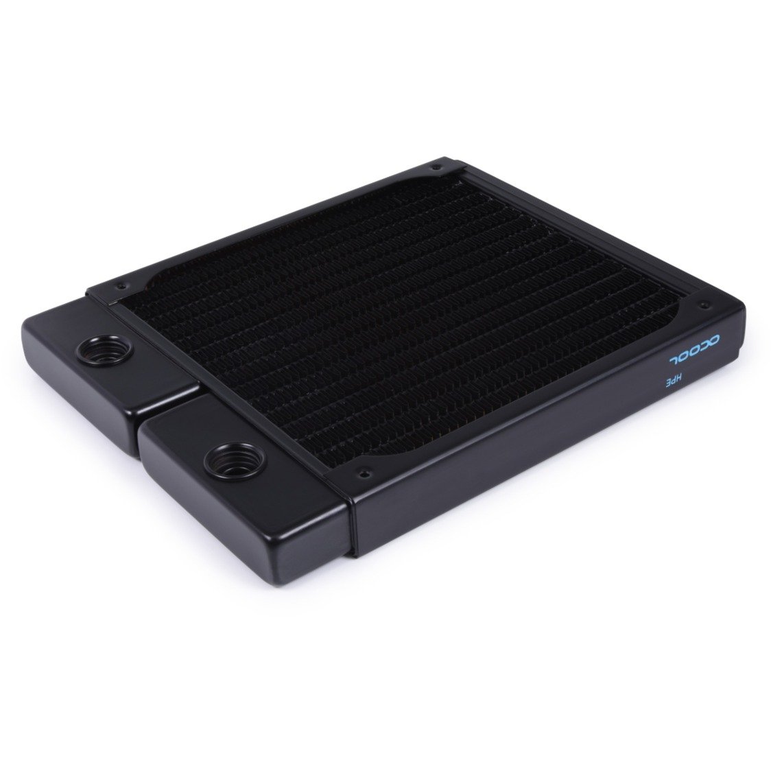 El radiador HPE de cobre completo NexXxos utiliza los mismos materiales que los modelos NexXxos anteriores, pero técnicamente va un paso más allá. Debido a la estructura interna compactada, se pudo aumentar el número de canales de agua y listones de cobre. Esto significa que un mayor volumen de agua está en contacto directo con las aletas de enfriamiento y la transferencia de calor se mejora enormemente. Debido al mayor número de filas de aletas y su acortamiento, la superficie de enfriamiento también se utiliza de manera mucho más eficiente. Debido a su baja altura de solo 20 mm, los radiadores compactos y delgados se pueden montar de manera muy flexible incluso en las carcasas más estrechas. El radiador HPE NexXxoS tiene una conexión IN y OUT con rosca G1/4″ en el área de las precámaras. El radiador viene con todos los tornillos para montar en la carcasa, así como para montar los ventiladores. Por lo general, no se necesitan tornillos adicionales. El radiador HPE NexXxoS tiene un dispositivo de protección especial que evita que los tornillos de ventilador o montaje se atornillen demasiado profundamente. Las placas protectoras se colocaron debajo de todos los orificios de montaje para evitar que los tornillos se atornillaran demasiado profundamente. Esto protege las aletas de enfriamiento subyacentes y los canales de agua de daños.