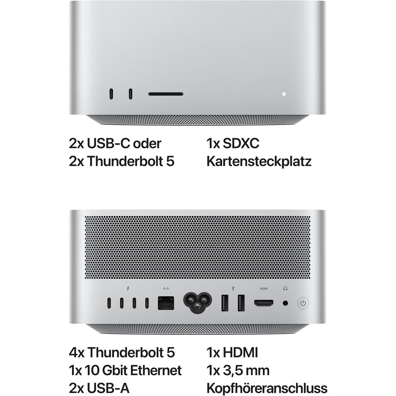 | Periferia | 2x USB-A 3.2 (5 Gbit/s), 2x USB‑C 3.2 (10 Gbit/s), 4x Thunderbolt 5 | ||