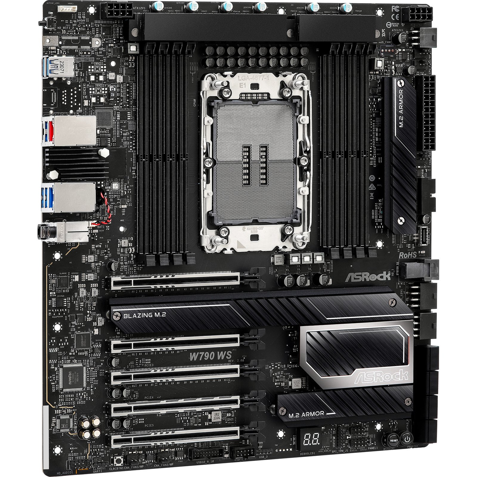 Das ASRock W790 WS R2.0 Mainboard basiert auf dem Intel®-Z790-Chipsatz und unterstützt Intel®-Prozessoren für den Sockel 4677. Es verfügt über acht DDR5-DIMM-Slots im Dual-Channel-Betrieb für bis zu 2 TB Arbeitsspeicher. Zur weiteren Ausstattung des ASRock W790 WS R2.0 gehören zwei PCIe-5.0-x16-Slots, zwei PCIe-5.0-x16-Slots (x8 Lanes) und ein PCIe-4.0-x16-Slot (x4 Lanes). Außerdem verfügt das ASRock W790 WS R2.0 über 8-Kanal-Sound, eine 10 Gigabit-LAN-Schnittstelle, eine 2,5 Gigabit-LAN-Schnittstelle, acht SATA3-Anschlüsse, ein U.2-Anschluss, vier M.2-Anschlüsse und eine Reihe an USB Schnittstellen.