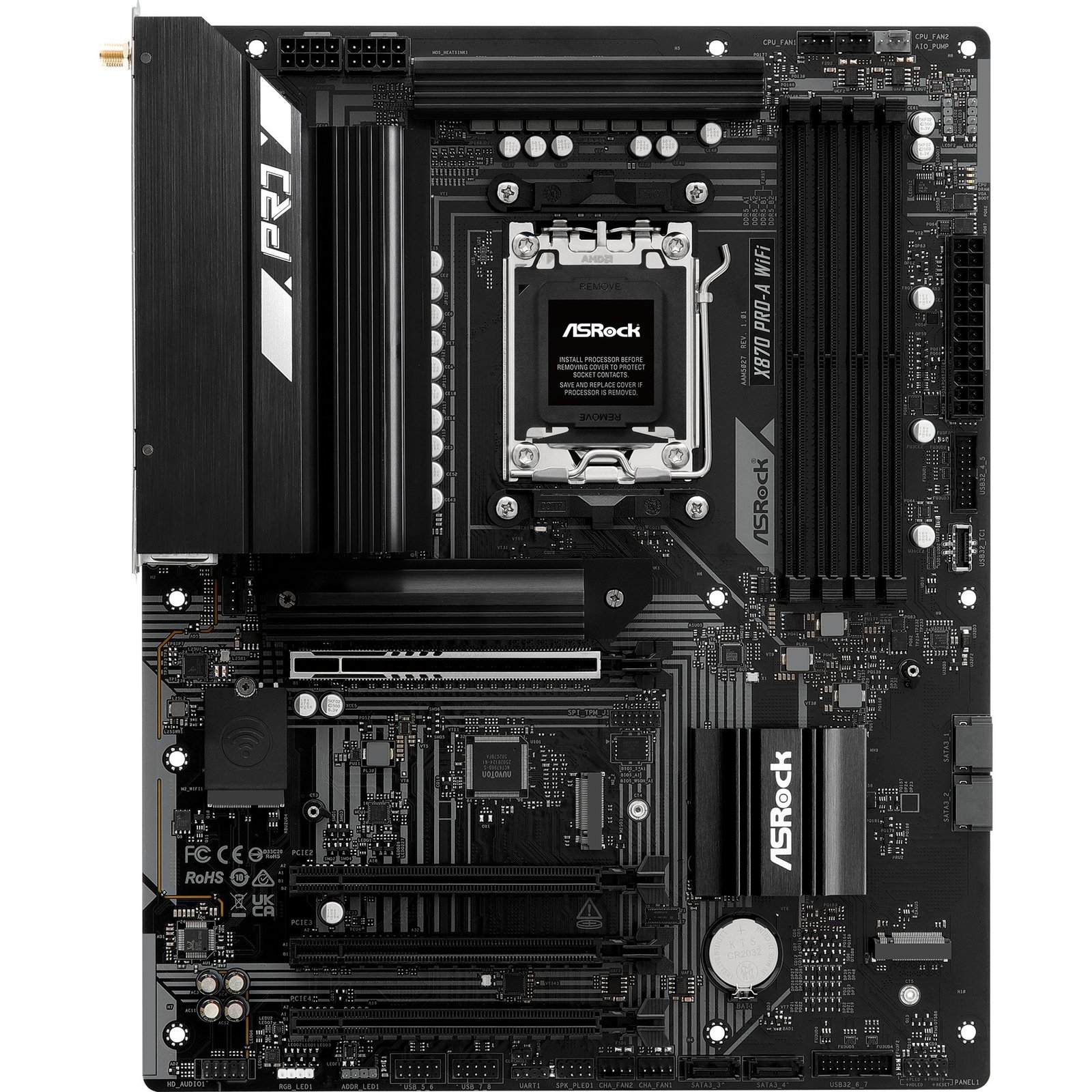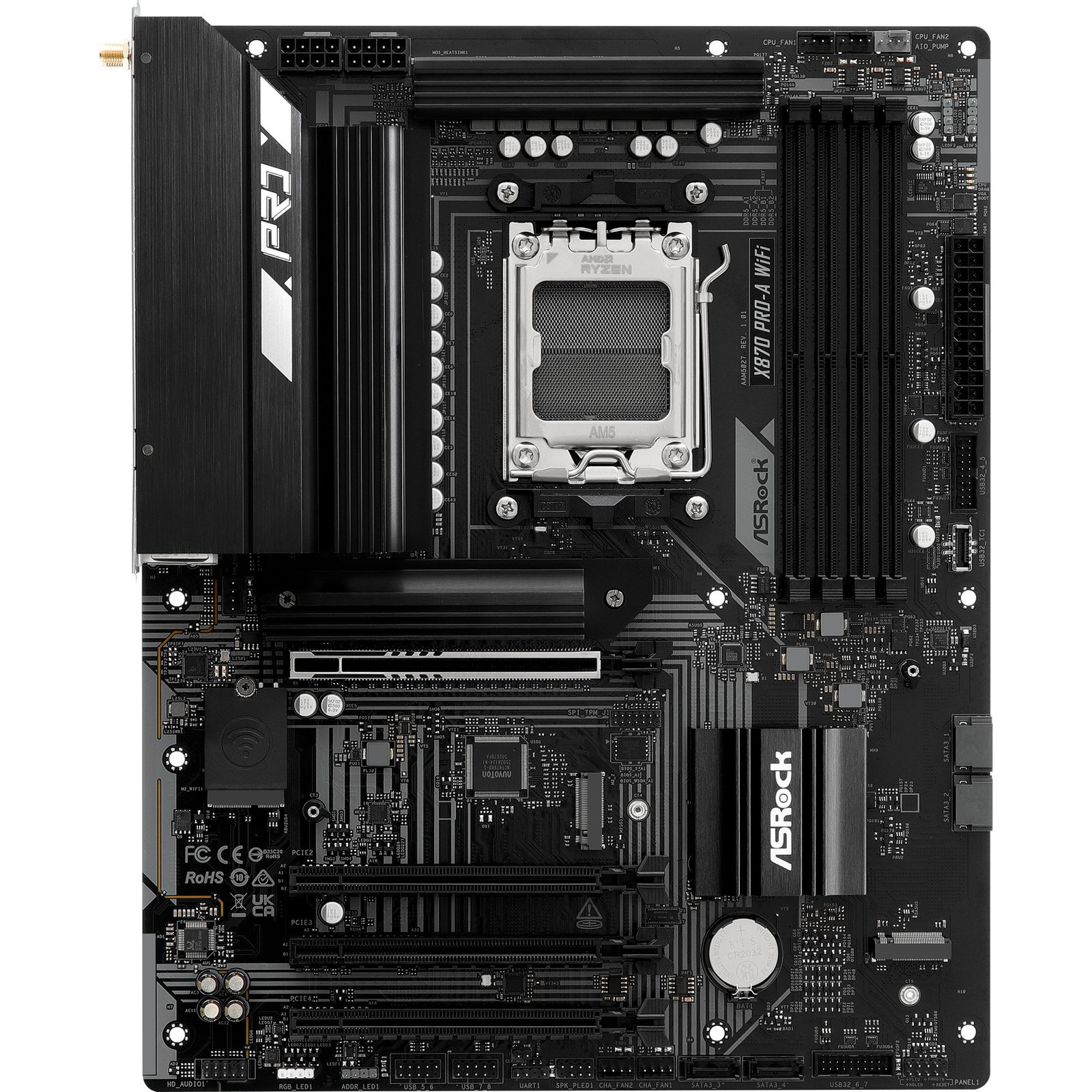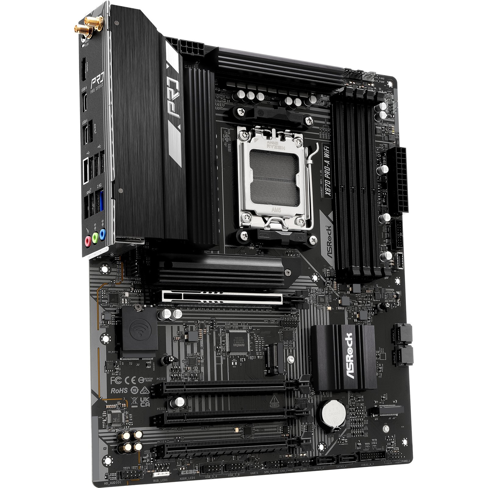 Das ASRock X870 PRO-A WiFi basiert auf dem AMD-X870-Chipsatz und unterstützt AMD-Prozessoren für den Sockel AM5. Es verfügt über vier DDR5-Slots für bis zu 256 GB Arbeitsspeicher. Zur weiteren Ausstattung des ASRock X870 PRO-A WiFi gehören ein PCIe-5.0-x16-Slot und ein PCIe-4.0-x16-Slot (x4 Lanes). Außerdem verfügt das ASRock X870 PRO-A WiFi über 8-Kanal-Sound, eine 2.5 Gigabit-LAN-Schnittstelle, WiFi 7, Bluetooth 5.4, vier SATA3-Anschlüsse, drei M.2-Anschlüsse und eine Reihe an USB Schnittstellen.