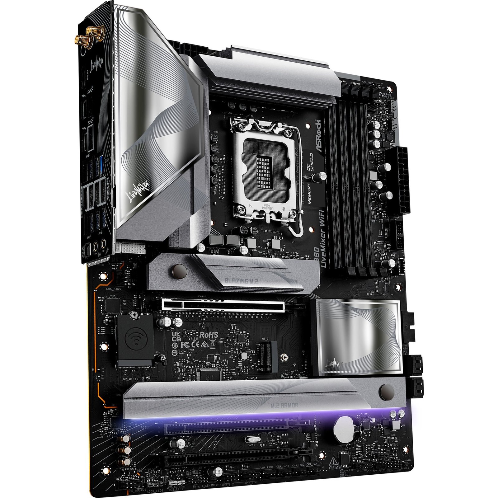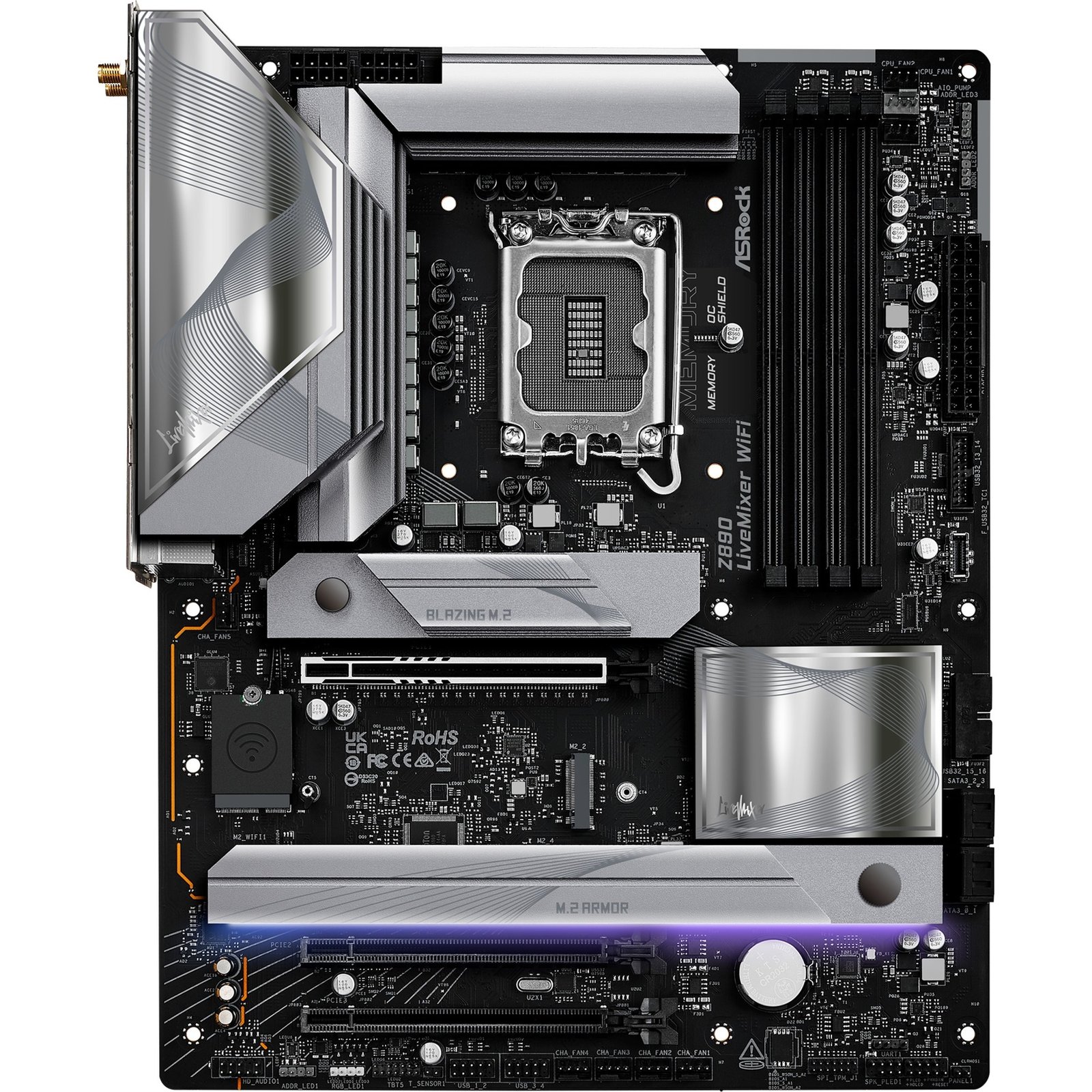 El ASRock Z890 LiveMixer WiFi está basado en el chipset Intel® Z890 y es compatible con los procesadores Intel® para el socket 1851. Tiene cuatro ranuras DDR5 para hasta 256 GB de RAM. Otras características del ASRock Z890 LiveMixer WiFi incluyen una ranura PCIe 5.0 x16 y dos ranuras PCIe 4.0 x16 (x4 carriles). Además, el ASRock Z890 LiveMixer WiFi cuenta con sonido de 8 canales, una interfaz LAN de 2,5 Gigabit, WiFi 7, Bluetooth 5.4, cuatro puertos SATA3, cuatro puertos M.2 y una gama de puertos USB.