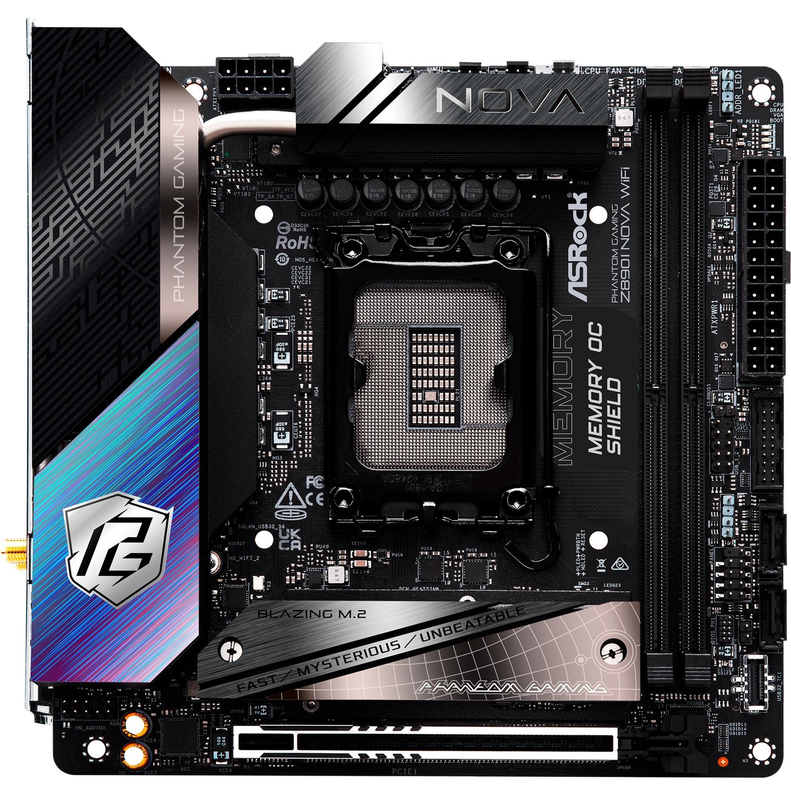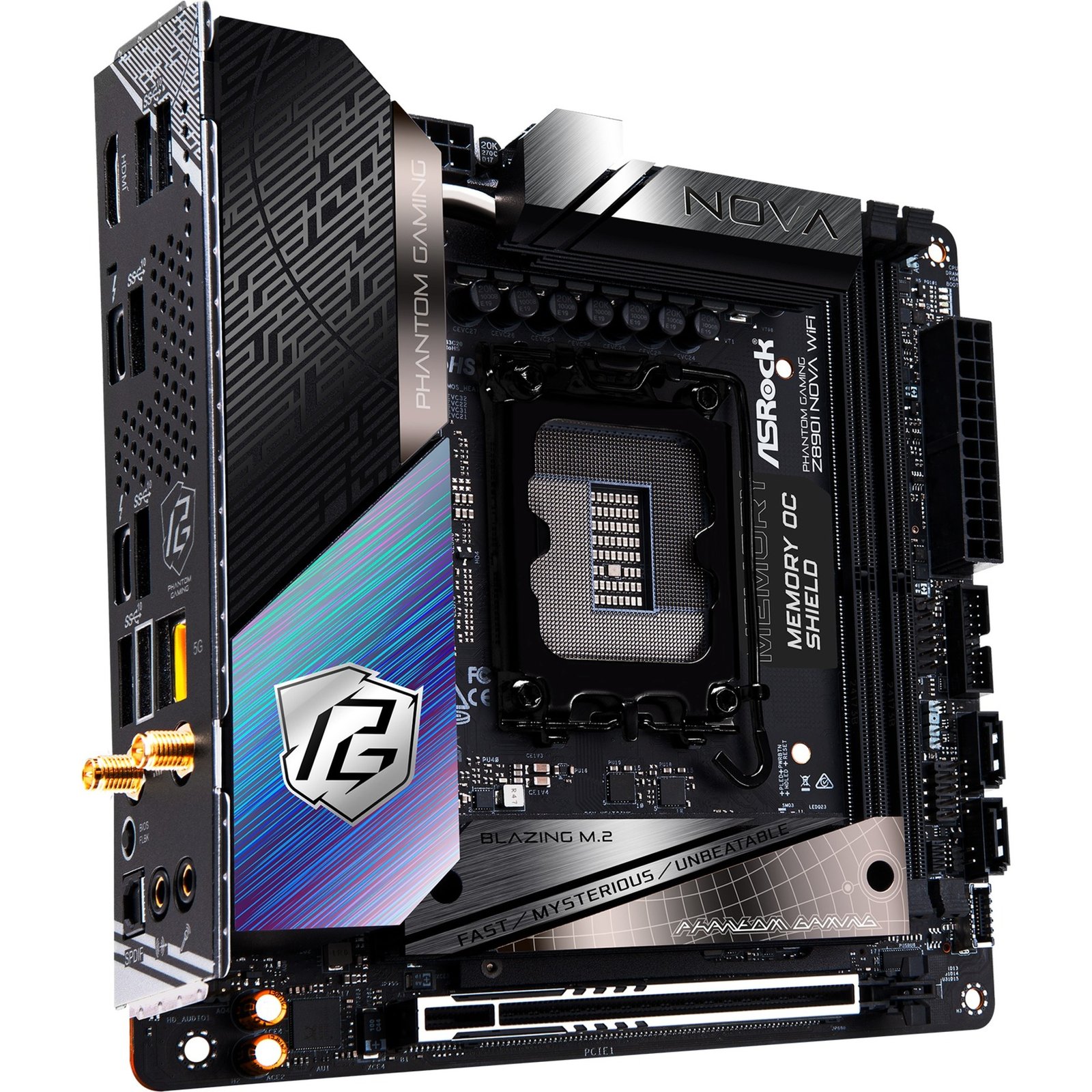 El ASRock Z890I NOVA WIFI está basado en el chipset Intel® Z890 y soporta procesadores Intel® para socket 1851. Tiene dos ranuras DDR5 para hasta 128 GB de RAM. El ASRock Z890I NOVA WIFI también cuenta con una ranura PCIe 5.0 x16. Además, el ASRock Z890I NOVA WIFI cuenta con sonido de 8 canales, una interfaz LAN de 5 Gigabits, WiFi 7, Bluetooth 5.4, dos puertos SATA3, tres puertos M.2 y una gama de puertos USB.