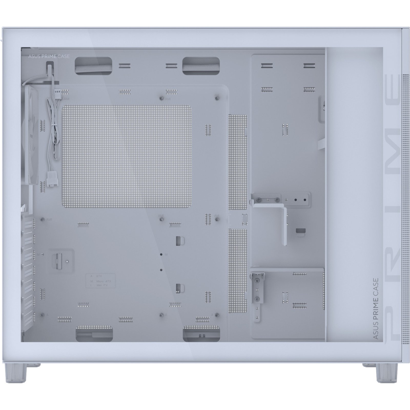 Das ASUS Prime AP303 ist ein kompaktes 44-Liter-ATX-Gehäuse, das 360-mm-Radiatoren mit bis zu 60 mm Dicke und Grafikkarten mit bis zu 360 mm Länge aufnehmen kann. Er verfügt über ein Grafikkarten-Bracket und einen Halter, um die Karten fest zu montieren, sowie über ein internes Stromkabel, das 15 Ampere liefert, um eine stabile Stromversorgung für High-End-PCs sicher zu stellen. Metallische Quasi-Filter-Netzeinsätze verbessern den Luftstrom und minimieren das Eindringen von Staub, sodass sie sowohl Leistung als auch Schutz in einem eleganten Stil bieten. Ein 34 mm breites Fach hinter dem Mainboard bietet trotz der relativ kompakten Abmessungen des Gehäuses ausreichend Platz, um Kabel ordentlich zu organisieren. Das AP303 verfügt über einen Typ-C-Anschluss mit 20 Gbit/s und zwei USB 3.0-Anschlüsse für zukunftssichere und abwärtskompatible Konnektivität. Die Seitenteile des AP303 werden mit einem einfachen, aber sicheren Clip-Mechanismus am Gehäuse befestigt. So lassen sie sich leicht entfernen und ermöglichen einen einfachen Zugang zum Inneren des Chassis.