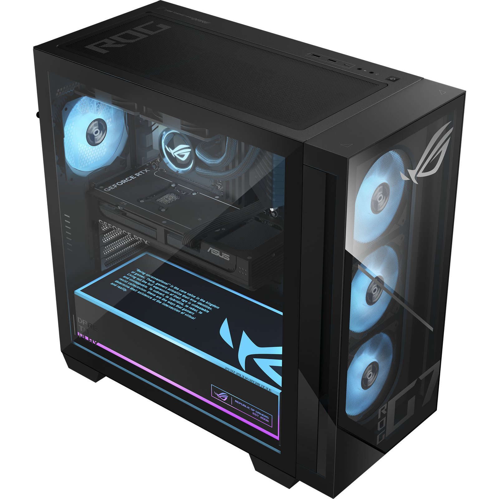 Der ASUS ROG G700 GM700TZ-R9800X064W ist die perfekte Kampfstation für jeden Gamer! Ausgestattet mit einem AMD Ryzen 7 9800X Prozessor ermöglicht dieses PC-System zusammen mit 64 GB DDR5-Arbeitsspeicher und einer 1 TB großen M.2-PCIe-SSD Gameplay der Spitzenklasse. Für entsprechend beeindruckende Grafikdarstellungen ist eine NVIDIA GeForce RTX 5070 mit 12 GB GDDR7-Videospeicher verbaut. 2,5-Gigabit-LAN und WLAN bis zum Standard Wi-Fi 6 sorgen Online-Gaming ohne Verzögerungen und die Wasserkühlung ermöglicht einen leisen und reibungslosen Betrieb. Darüber hinaus bietet der ROG G700 umfassende Anschlussmöglichkeiten für Monitore und weitere Peripherie. Dank transparentem Front- und Seitenteil kombiniert mit sorgfältig platzierten RGB-Beleuchtungsakzenten ist der ROG G700 ein Prunkstück, das einer Kampfstation würdig ist.