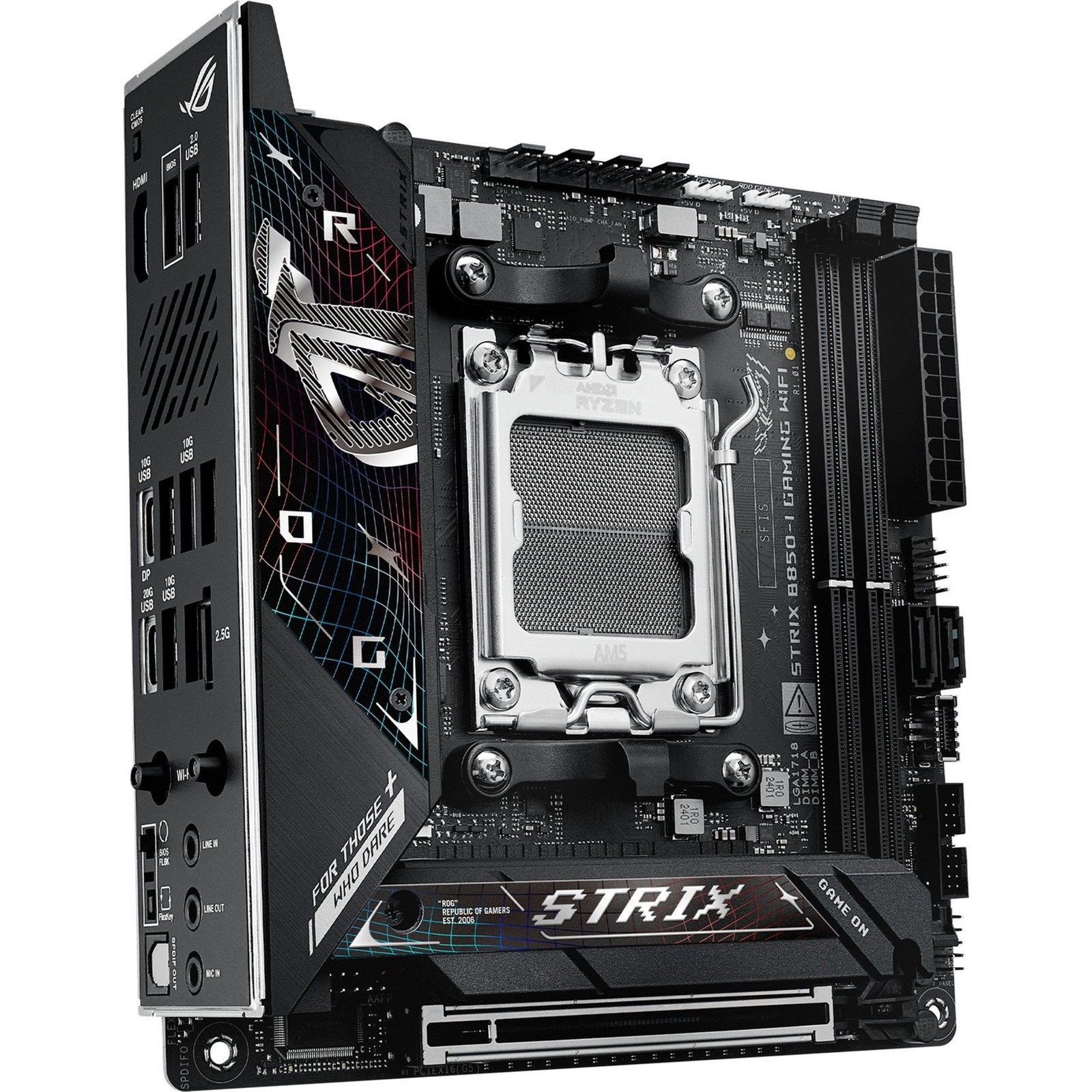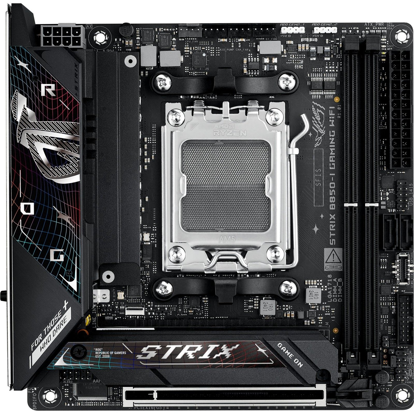 El ASUS ROG STRIX B850-I GAMING WIFI se basa en el chipset AMD B850 y es compatible con los procesadores AMD para el socket AM5. Tiene cuatro ranuras DDR5 para hasta 96 GB de RAM. El ASUS ROG STRIX B850-I GAMING WIFI también tiene una ranura PCIe 5.0 x16. Además, el ASUS ROG STRIX B850-I GAMING WIFI tiene sonido de 8 canales, una interfaz LAN de 2.5 Gigabit, WiFi 7, Bluetooth 5.4, dos puertos SATA3, dos puertos M.2 y varios puertos USB.