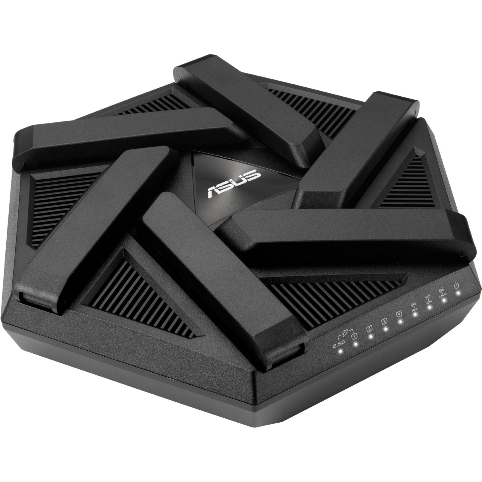 El RT-AXE7800 es un router WiFi 6E (802.11ax) tribanda. El RT-AXE7800 es compatible con la nueva banda de 6 GHz, ASUS Safe Browsing, seguridad de red mejorada con AiProtection Pro e Instant Guard Shareable Secure VPN, controles parentales gratuitos, puerto 2.5G y agregación de enlaces. La banda de 6 GHz aumenta drásticamente la capacidad de la red, proporcionando un mayor rendimiento Wi-Fi y una conectividad más estable con velocidades de hasta 7800 Mbps combinadas.