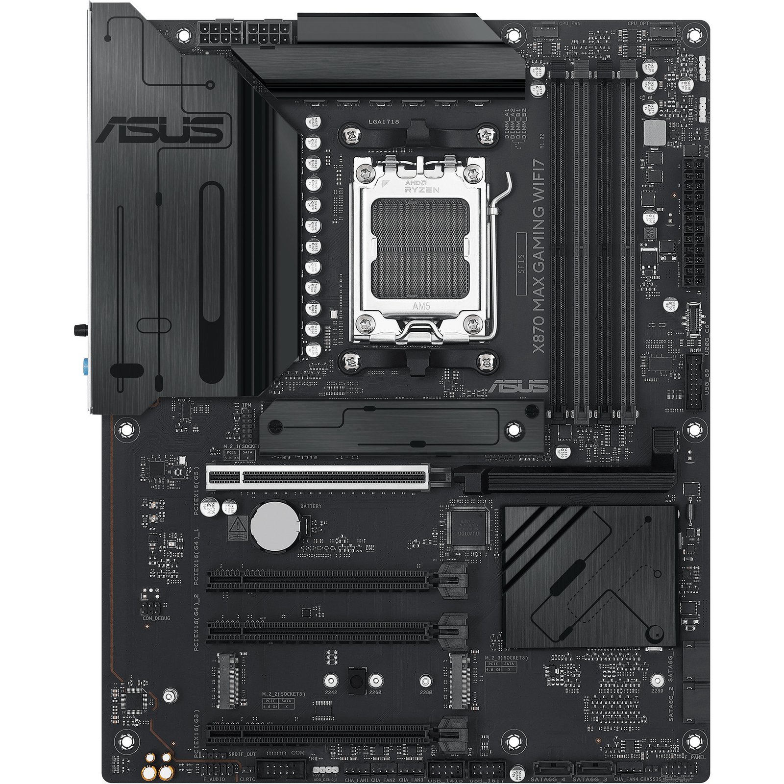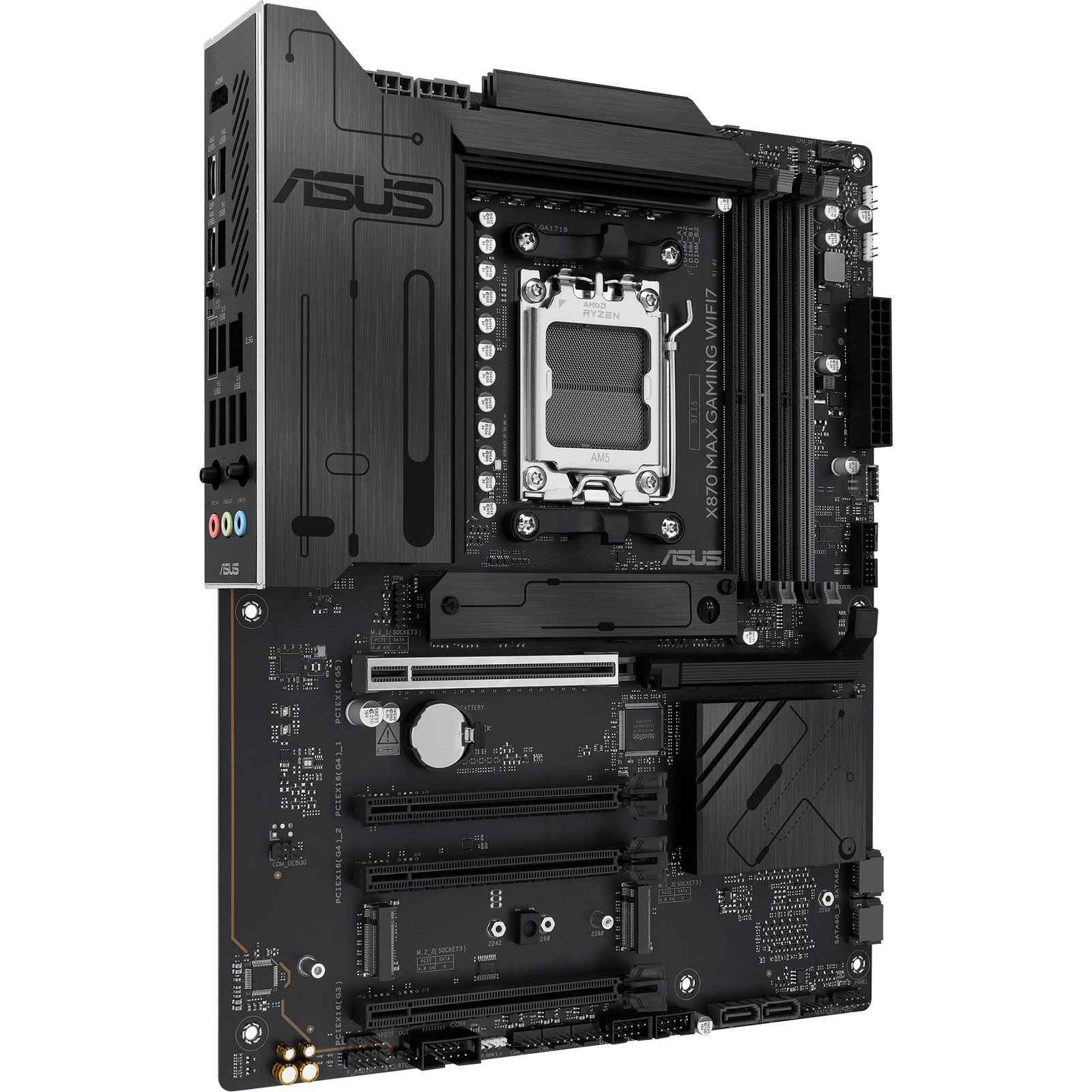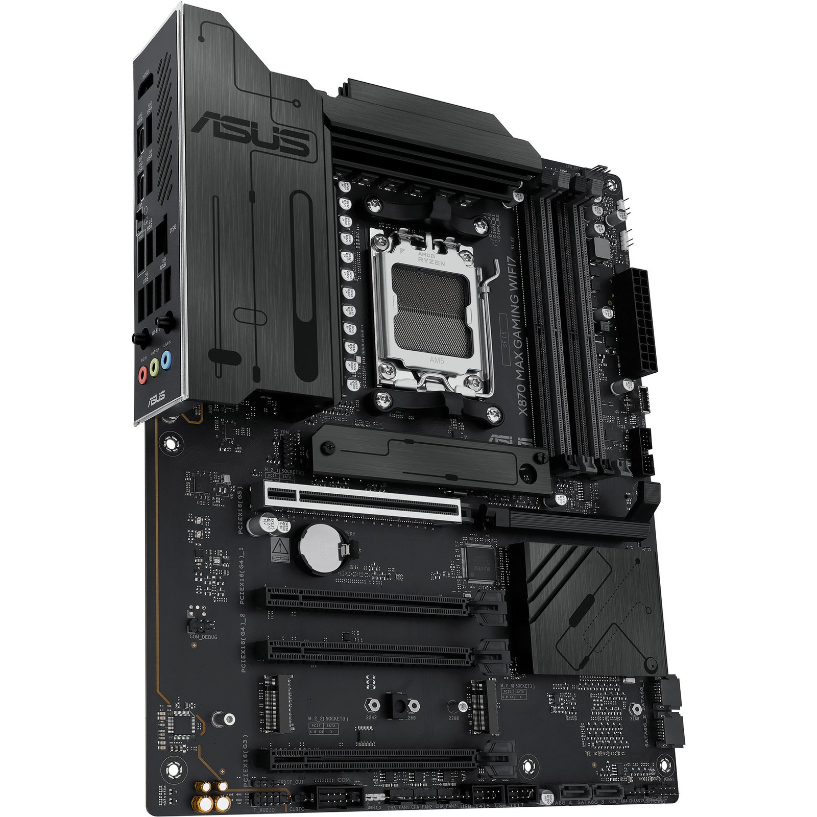 El ASUS X870 MAX GAMING WIFI7 se basa en el chipset AMD X870 y es compatible con los procesadores AMD para el socket AM5. Tiene cuatro ranuras DDR5 para hasta 256 GB de RAM. El ASUS X870 MAX GAMING WIFI7 también cuenta con una ranura PCIe 5.0 x16, dos ranuras PCIe 4.0 x16 (x1 carriles) y una ranura PCIe 3.0 x16 (x1 carriles). Además, el ASUS X870 MAX GAMING WIFI7 cuenta con sonido de 8 canales, una interfaz LAN de 2,5 Gigabit, WiFi 7, Bluetooth 5.4, cuatro puertos SATA3, cuatro puertos M.2 y una gama de puertos USB.