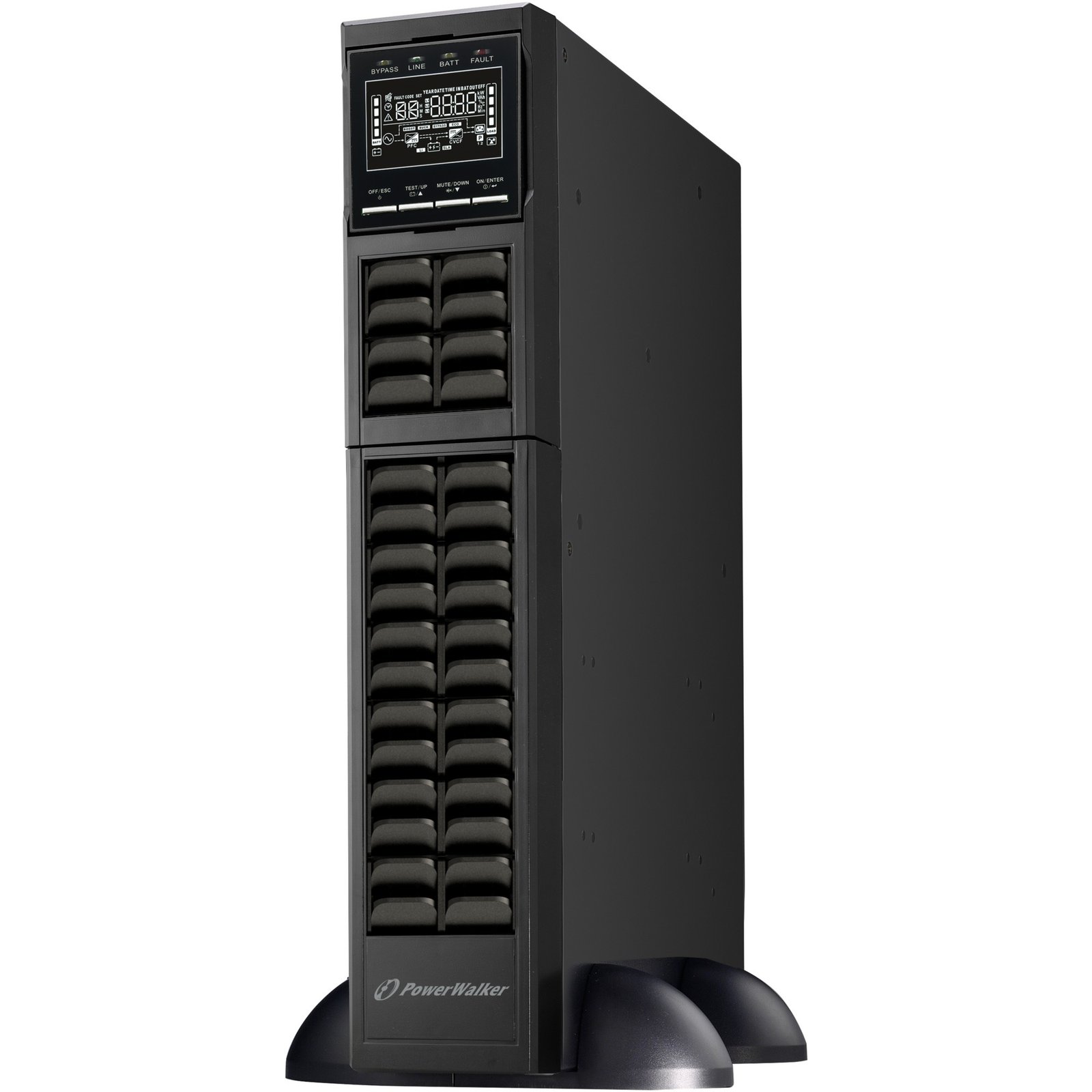 Die USV PowerWalker VFI 10000 RMG PF1 verhindert, dass Totalausfälle, Aussetzer, Durchhänger und Stromspitzen aus dem Stromnetz bis zum Computer oder zu anderen elektronischen Geräten vordringen. Die PowerWalker VFI 10000 RMG PF1 beseitigt zudem in der Stromzuleitung auftretende kleinere Schwankungen und isoliert die angeschlossenen Geräte gegen größere Störungen, indem sie die Verbindung zur Stromzuleitung trennt und Strom aus den internen Batterien liefert, bis die Stromzuleitung zu sicheren Leistungspegeln zurückkehrt. Mit 10000 Watt Leistung eignet sich die PowerWalker VFI 10000 RMG PF1 ideal für die Absicherung von empfindlichen Geräten. Sie kann per LCD-Display oder PowerWalker ViewPower Software überwacht werden.