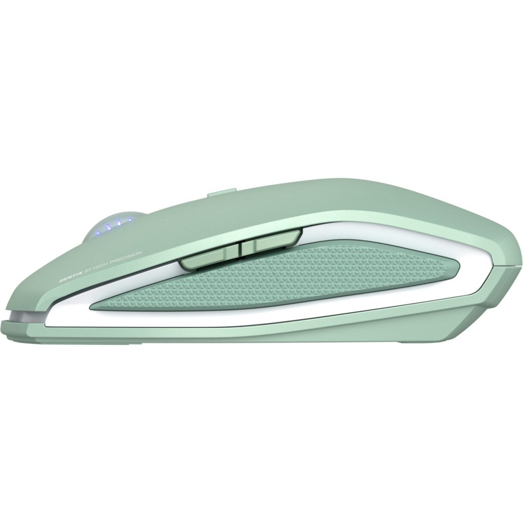 El CHERRY GENTIX BT es un ratón Bluetooth con función multidispositivo para hasta tres dispositivos finales y se basa en el probado ratón GENTIX. Los datos se transmiten mediante cifrado seguro AES-128. Al presionar el botón Bluetooth en la parte inferior del mouse inalámbrico, se puede conectar fácilmente a varios dispositivos finales, como PC, computadora portátil, tableta, teléfono inteligente o Smart TV. El sensor óptico conmutable y de alta precisión ofrece suficiente precisión y velocidad con 1.000 o 2.000 ppp para hacer felices incluso a los usuarios exigentes. El práctico conmutador DPI facilita el cambio entre las dos resoluciones con un clic. La rueda de desplazamiento iluminada en azul no solo llama visualmente la atención, sino que también proporciona información sobre el nivel de resolución seleccionado y el estado de la batería. Con los dos botones adicionales del GENTIX BT, puede navegar hacia adelante y hacia atrás en el navegador a la velocidad del rayo y el software gratuito CHERRY KEYS está disponible para la asignación de teclas individuales. Sin cambios en los ratones GENTIX probados son los paneles laterales de goma, que ofrecen un agarre firme y una agradable sensación de la mano. Con su forma afilada hacia atrás, el ratón tiene una ergonomía perfecta, tanto para manos pequeñas como grandes. Dependiendo del uso, el GENTIX BT también ofrece una duración de batería de hasta un año y no requiere ningún software adicional para su uso. Para una mayor movilidad, se incluye una práctica bolsa de transporte.