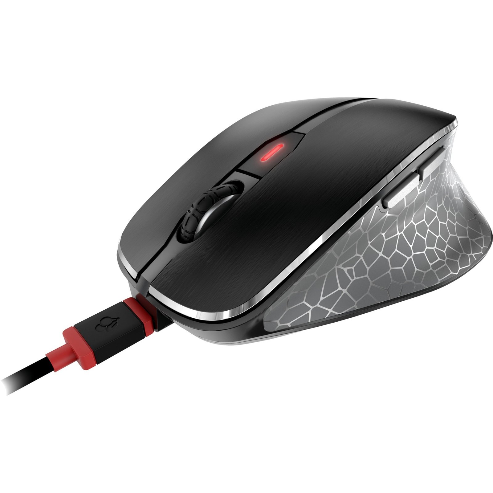Calidad sin compromiso, diseño elegante, la más moderna tecno-logía y los mejores materiales: estos son los ingredientes de los que está hecho el ratón inalámbrico CHERRY MW 8C ERGO. Su ergonómica forma, de generosas dimensiones, ha sido diseñada para el manejo del ratón con la mano derecha. Incluso tras horas de intenso trabajo, la mano se sigue encontrando cómoda sobre el ratón. Las teclas del ratón, de aluminio anodizado, miman la mano con su agradable háptica. Los laterales revestidos de goma, con superficie de apoyo para el pulgar y un moderno diseño Voronoi, realzan el confort. El pulgar encuentra automáticamente una posi-ción agradable en la que reposar cómodamente. Unas amplias superficies deslizantes permiten al ratón deslizarse suavemente por la mesa de trabajo, protegiendo así la muñeca del usuario.Gracias a su sensor de alta precisión, el ratón inalámbrico para ordenadores funciona sobre prácticamente cualquier superficie, incluidas mesas de cristal. Pulsando el botón DPI se puede regular la resolución en 4 niveles: 600, 1000, 1600 o 3200 dpi. De este modo, el ratón también es apto para su uso en pantallas 4K de alta resolución. La batería de litio integrada puede cargarse fácilmente a través del cable USB-C adjunto, incluso mientras se está traba-jando. Gracias a su gran capacidad de 550 mAh, una carga basta para poder trabajar durante varias semanas sin interrupciones. Un LED bicolor de estado le indica el estado de la pila, el estado de carga, la resolución seleccionada o el estado de conexión. A dife-rencia de los ratones habituales, el CHERRY MW 8C ERGO puede conectarse a través del receptor USB de radiofrecuencia de 2,4 GHz o a través de Bluetooth®. Se puede conmutar rápidamen-te entre estos dos modos de conexión mediante un interruptor situado en la base del ratón. Ello permite, p. ej., manejar un orde-nador portátil a través de Bluetooth® y además un PC por radio-frecuencia mediante el mismo ratón. Y para conmutar entre am-bos dispositivos, solo tiene que accionar el interruptor. En ambos casos, la transmisión de datos tiene lugar con encriptación AES 128 y con un amplio alcance de 10 metros.Pero el CHERRY MW 8C ERGO ofrece además muchas otras fun-ciones y sofisticados detalles con los que seduce al usuario. Su rueda de metal con una vida útil extremadamente larga y con exploración óptica, su compartimento con bloqueo magnético para guardar el receptor USB o su funda de transporte aterciope-lada: con todas estas características, este ratón inalámbrico está en condiciones de satisfacer todos sus deseos y resulta perfecta-mente adecuado tanto para el uso móvil como para el uso fijo.