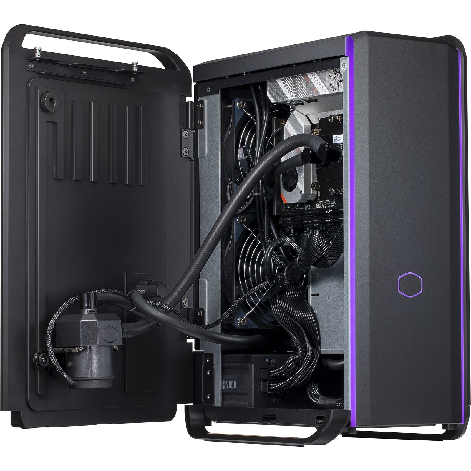 Der Cooler Master Cooling X ist ein Gaming-PC wie kein anderer. Seine einzigartige Flüssigkeitskühlungslösung wurde neu konzipiert, um den Cooling X kompakt, kühl und leise zu machen. Sowohl die CPU als auch die GPU werden effizient durch einen Kupfer-Wasserblock gekühlt, der die Wärme effektiv abführt und an einen 240-mm-Radiator und flüssigkeitsgekühlte Seitenteile weiterleitet. Ausgestattet mit einem AMD Ryzen 9 7950X3D 16-Kern-Prozessor, schnellen 64 GB DDR5-Arbeitsspeicher und einer NVIDIA GeForce RTX 4080 Grafikkarte mit 16 GB GDDR6X-Videospeicher lässt dieser PC Gamer-Herzen höher schlagen. Die zwei jeweils 2 TB großen M.2-PCIe-SSDs sorgen für Programm- und Systemstarts in Rekordzeit und bietet zudem jede Menge Platz zum Speichern von Daten. Über 2,5-Gigabit-LAN sowie Wi-Fi 6E und Bluetooth 5.2 ist der Cooling X netzwerkfähig und diverse Anschlüsse ermöglichen die Verbindung von bis zu fünf Monitoren gleichzeitig (2x 4K und 3x 8K) und verschiedenster Peripheriegeräte.