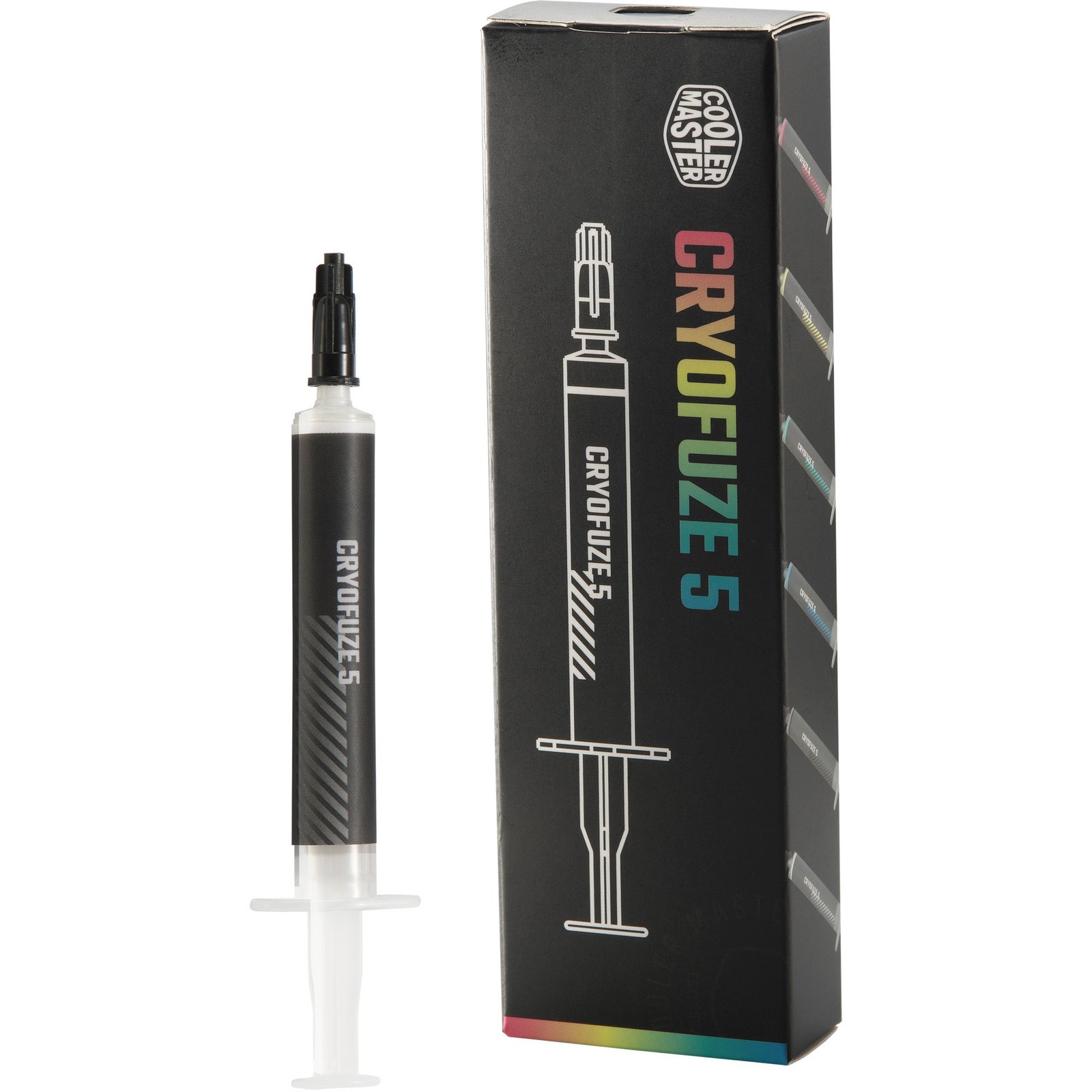 La información relacionada con la seguridad está disponible para este artículo. Puede encontrar más información en la hoja de datos de seguridad. Debido a la popularidad de la pasta térmica CryoFuze Violet, Cooler Master está agregando 5 colores más con CryoFuze. Mediante el uso de nanopartículas, CryoFuze permite una excelente conductividad térmica en todos los componentes de procesamiento para una transferencia de calor óptima. La viscosidad equilibrada y la composición aislada eléctricamente proporcionan la máxima unión con una aplicación y limpieza sin esfuerzo. Las propiedades no corrosivas y resistentes a la oxidación evitan la solidificación y dejan intactas las superficies de contacto con el metal. El CryoFuze 5 tiene un rango de temperatura versátil y ofrece estabilidad desde -50 °C hasta 240 °C.