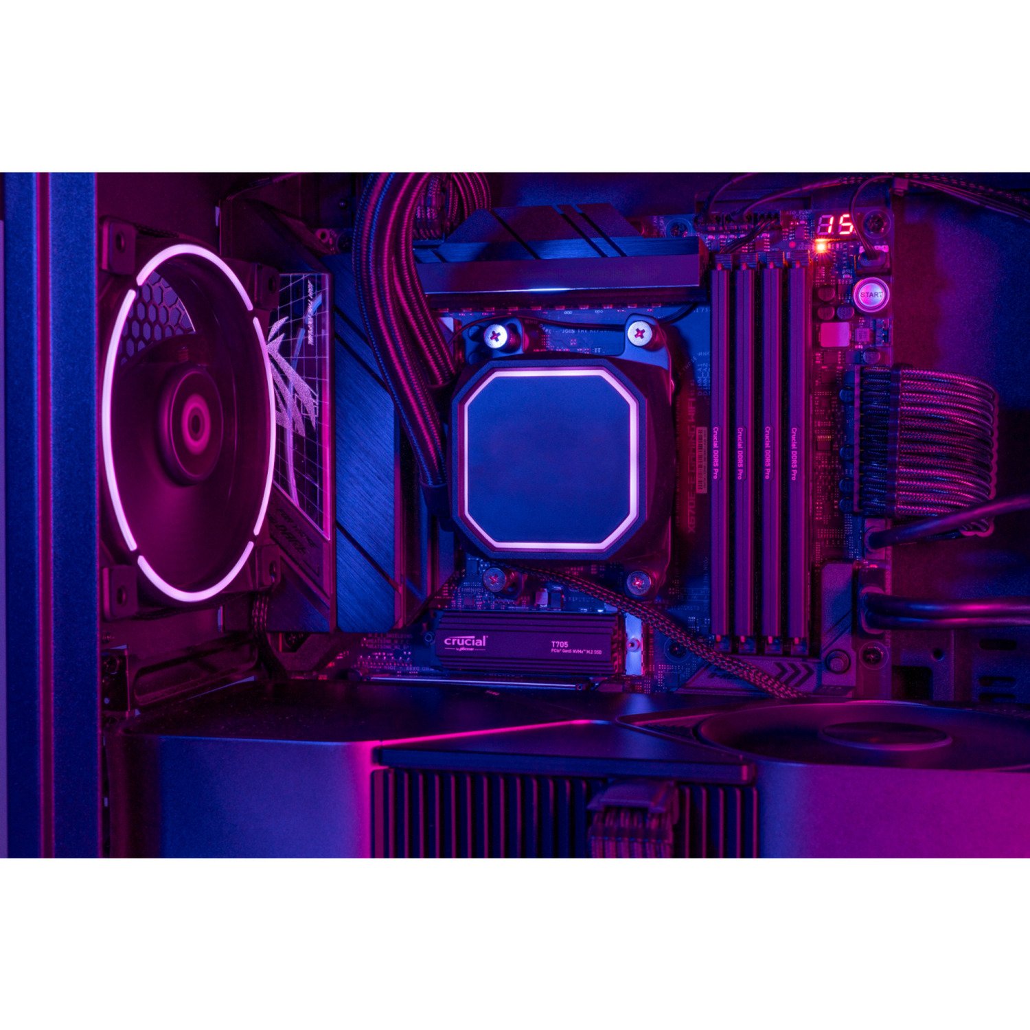 Die Crucial T705 bietet eine beeindruckende Geschwindigkeit und hohen Datenschutz mit sequentiellen Lesevorgängen von bis zu 14.500 MB/s. Die T705 wurde mit der NVMe-Technologie entwickelt und umfasst erweiterte Funktionen wie dynamische Schreibbeschleunigung, vollständige hardwarebasierte Verschlüsselung und adaptiven Temperaturschutz, um die Daten sicher zu speichern und gleichzeitig die Zuverlässigkeit des Systems zu erhöhen. Der Kühlkörper aus Aluminium und vernickeltem Kupfer wurde eigens entwickelt, um die Leistung beim Spielen und 3D-Rendering zu maximieren und gleichzeitig die Drosselung zu minimieren – ohne das Geräusch- oder Ausfallrisiko integrierter Lüfter oder Flüssigkeitskühlung.