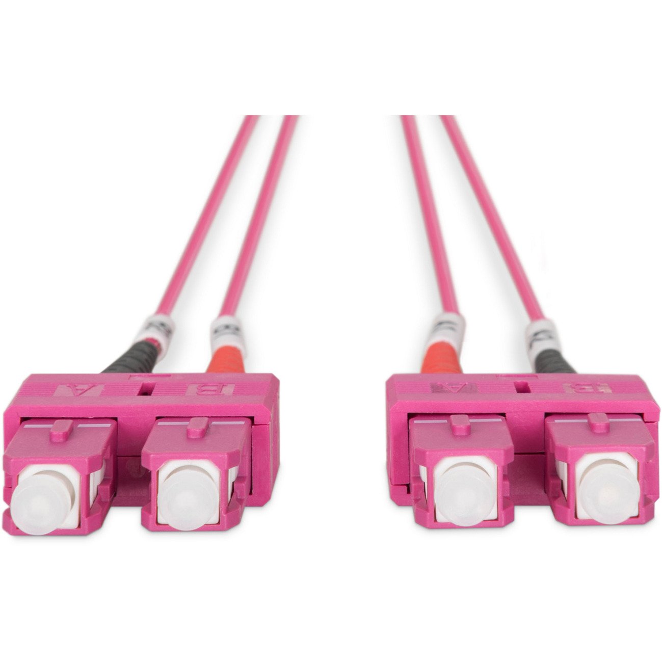 Das 1 Meter lange LWL Multimode OM4 Patchkabel DK-2522-01-4 mit Steckverbindern SC (subscriber connector) auf SC eignet sich zur Verlegung von optischen Netzwerkverbindungen (Glasfaser) im Gigabit-Bereich und bietet zukunftsorientierte Standards und High-End Qualität für das Netzwerk. Das Kabel verfügt über Stecker mit Keramik Ferrule und einen Kabeldurchmesser von 2mm.