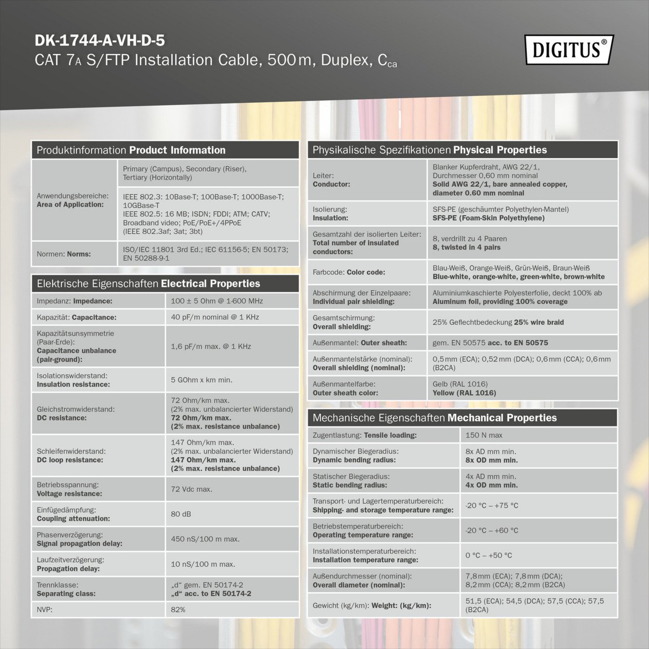 Digitus Professional Cat.7a S/FTP Verlegekabel Duplex Amarillo
