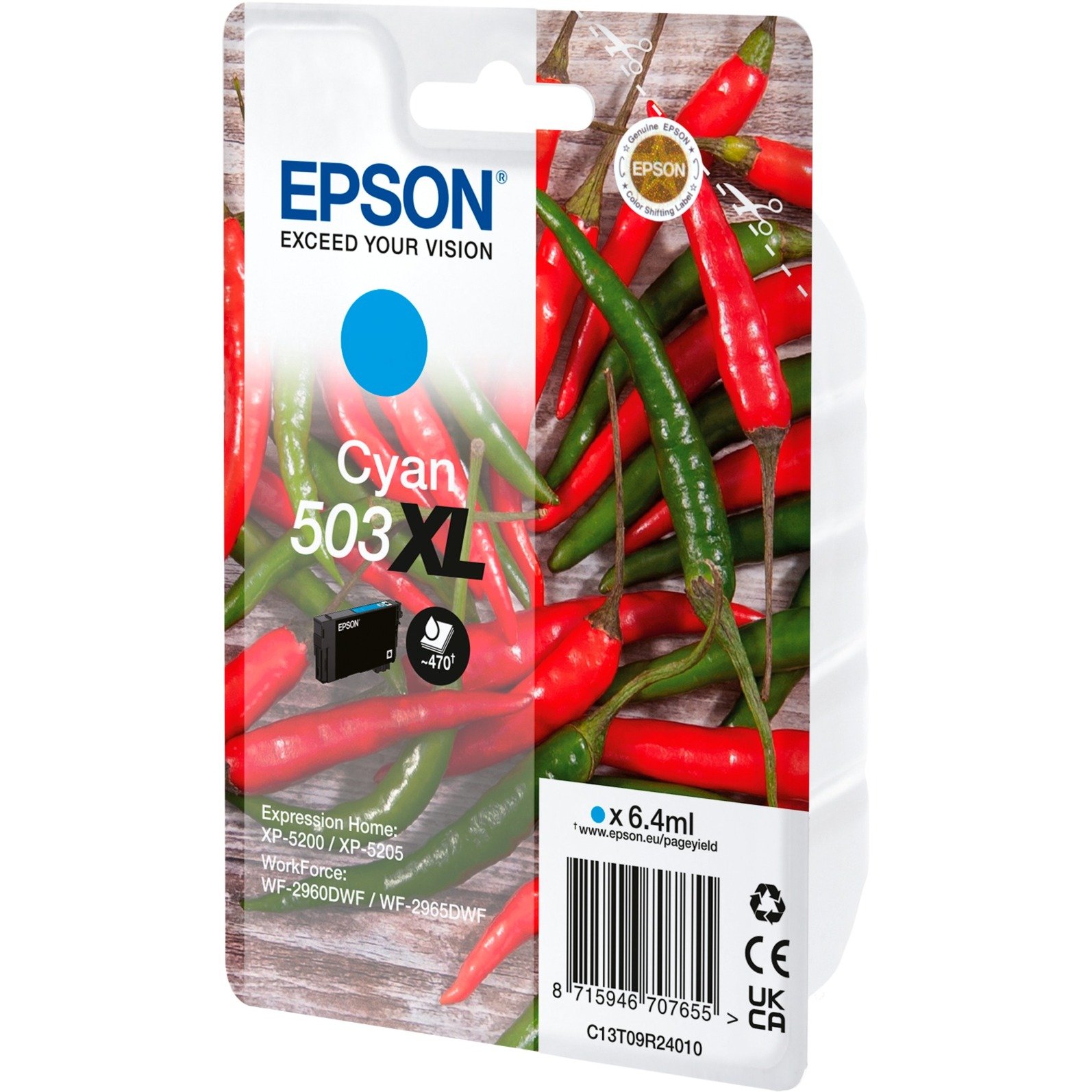La tinta cian 503XL (C13T09R24010) es un consumible original de Epson. Este cartucho de tinta contiene 6,4 ml de tinta. Es adecuado para los modelos Epson Expression Home XP-5200 y Epson WorkForce WF-2960DWF.