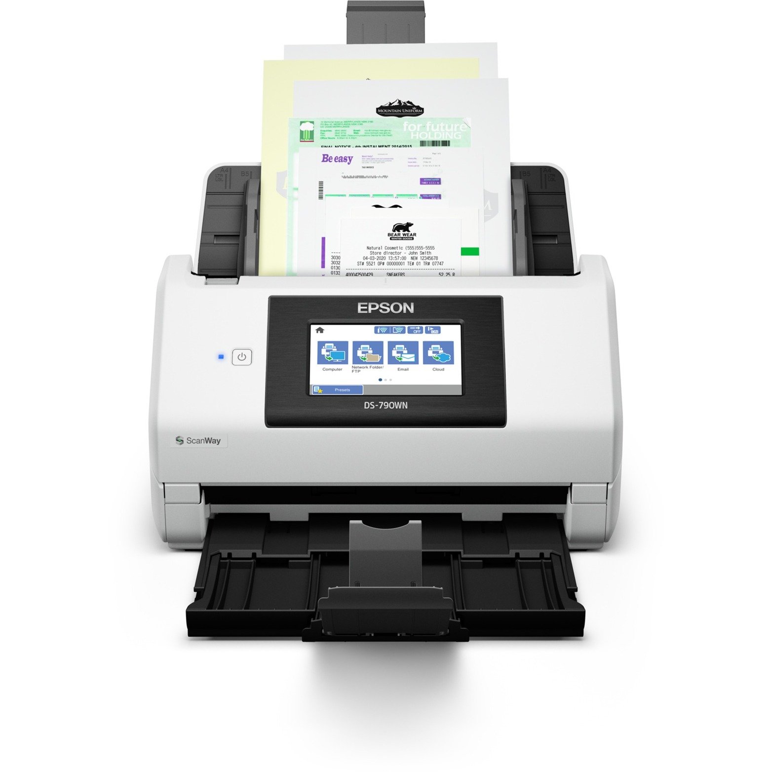 Schnell, effizient, fexibel: Der WorkForce DS-790WN ist ein zuverlässiger DIN A4-Einzugsscanner mit Duplex-Funktion und automatischem Einzug für bis zu 100 Blatt. Er erreicht eine Geschwindigkeit von bis zu 45 Seiten pro Minute und verfügt über einen USB-Host-Anschluss. Dieser erlaubt Scans direkt auf einen USB-Stick, womit Scannen ohne PC möglich wird. Darüber hinaus verfügt der 790WN über eine breite Auswahl an Anschlussmöglichkeiten: Neben einem schnellen USB-Anschluss sind WLAN, Wi-Fi direct und LAN an Bord. Dieser Scanner ist für ein Volumen von bis zu 7000 Seiten pro Tag ausgelegt und verfügt über integrierte Sensoren für die Erkennung von Papierstau, Doppeleinzug und Schmutz auf dem Vorlagenglas.