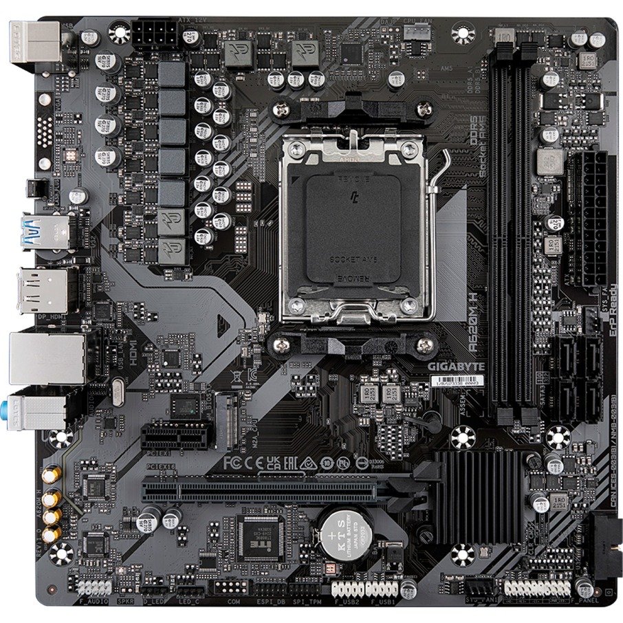 La A620M H de GIGABYTE está basada en el chipset AMD A620 y soporta procesadores AMD para socket AM5. Tiene dos ranuras DDR5 para hasta 96 GB de RAM. La A620M H de GIGABYTE también cuenta con una ranura PCIe 4.0 x16 y una ranura PCIe 3.0 x1. Además, la A620M H de GIGABYTE cuenta con sonido de 8 canales, una interfaz LAN Gigabit, cuatro puertos SATA3, un puerto M.2, salidas gráficas dependientes de la CPU para DisplayPort y HDMI, y una gama de puertos USB.