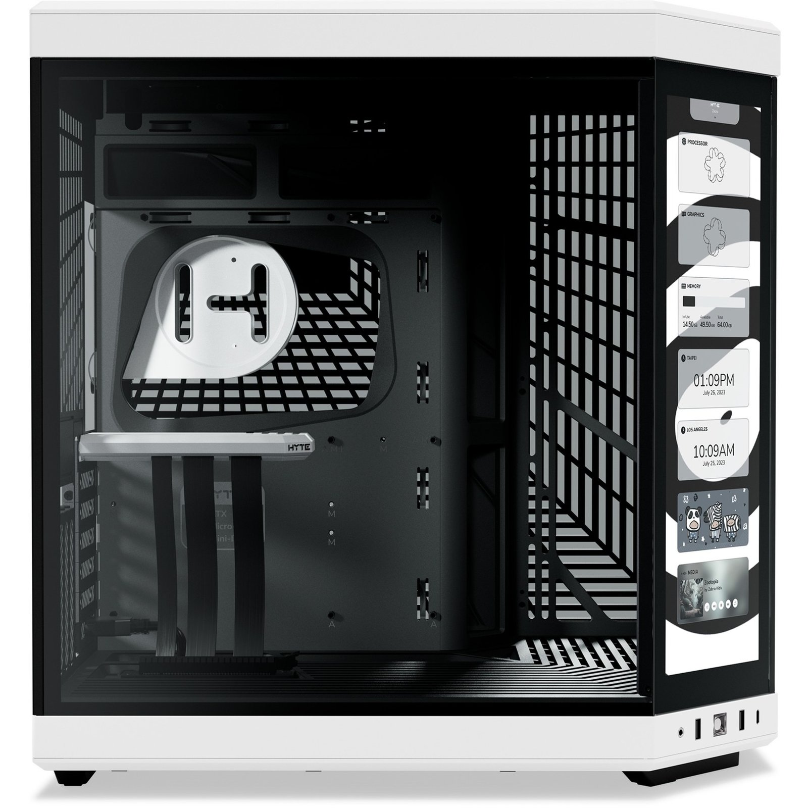 El HYTE Y70 Touch Infinite es una caja de torre media ATX de doble cámara mejorada con un diseño moderno. El chasis amplía el soporte de la GPU a 4 ranuras con espacio de flujo de aire adicional entre el borde de la tarjeta y el cristal. Esto significa que puede instalar fácilmente incluso las tarjetas gráficas más grandes y potentes en su sistema. Además, la refrigeración inferior puede alojar hasta tres ventiladores de 120 mm o dos de 140 mm de hasta 32 mm de grosor para dirigir el flujo de aire fresco directamente a la GPU. Un espacioso interior alberga un radiador de hasta 360 mm de largo y 125 mm de grosor en el lateral y un soporte superior ajustable que puede alojar otro radiador de 360 mm de hasta 68 mm de grosor en la parte superior. El diseño interior de dos cámaras garantiza que la parte delantera se vea genial, mientras que la parte trasera le brinda mucho espacio para pasar cables, especialmente con la ayuda de nuestro ojal de goma sin costuras en forma de L, canales de administración de cables y puntos de fijación cuidadosamente colocados y correas de Velcro reutilizables. Con una resolución de 682 x 2560 (2.5K) y una frecuencia de actualización de 60Hz, esta pantalla táctil capacitiva ofrece una experiencia visual increíblemente nítida y fluida, así como una capacidad multitáctil de 10 puntos que abre una amplia gama de posibilidades con una amplia personalización de la pantalla a través del software HYTE Nexus. Todo en un solo paquete que se integra en la estructura del gabinete y permite una interacción digital significativa con la mejor pantalla en un gabinete.