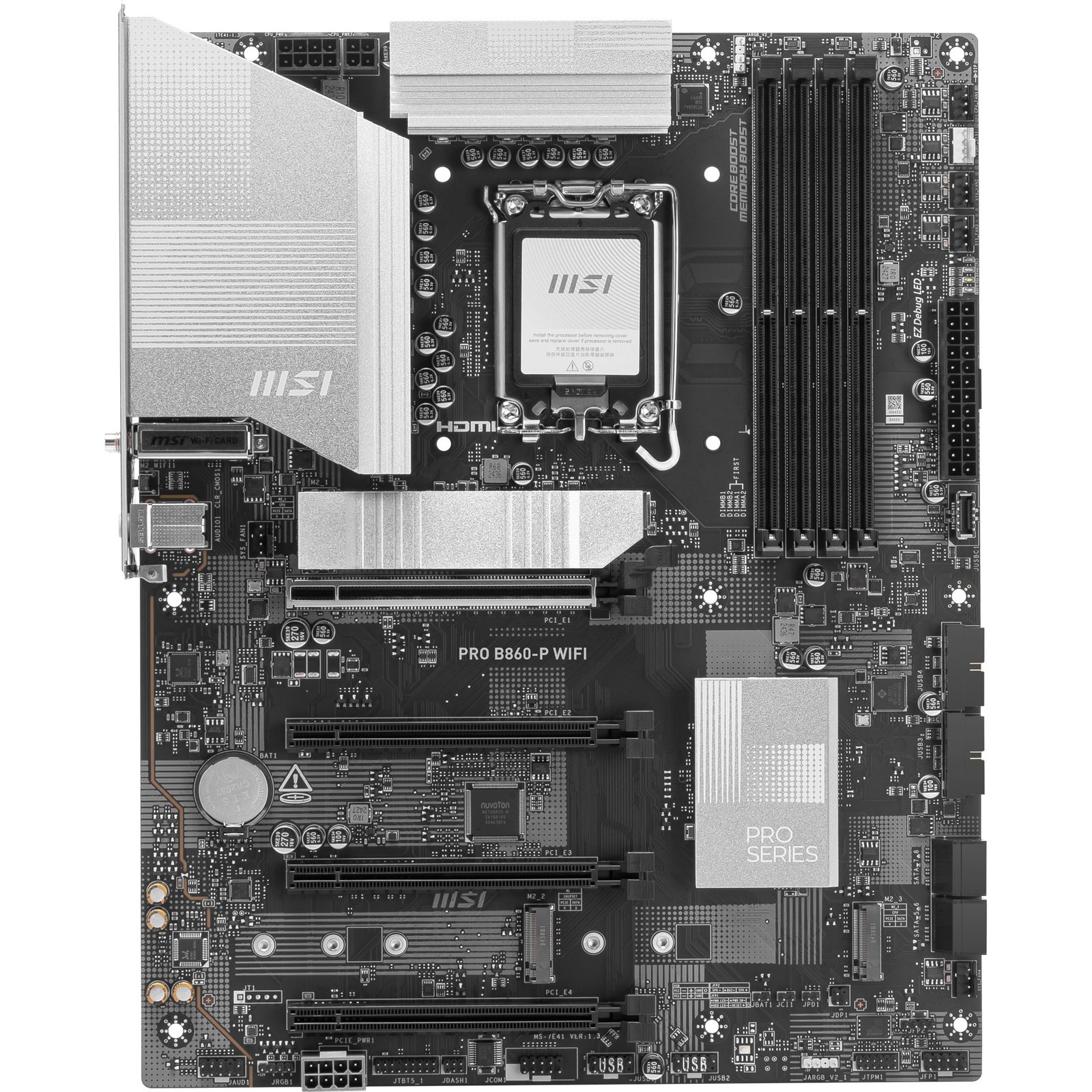 El MSI PRO B860-P WIFI está basado en el chipset Intel® B860 y es compatible con procesadores Intel® para el socket 1851. Tiene cuatro ranuras DDR5 para hasta 256 GB de RAM. Otras características del MSI PRO B860-P WIFI incluyen una ranura PCIe 5.0 x16, una ranura PCIe 4.0 x16 (x4 carriles) y dos ranuras PCIe 4.0 x16 (x1 carriles). Además, el MSI PRO B860-P WIFI cuenta con sonido de 8 canales, una interfaz LAN de 5 Gigabits, WiFi 7, Bluetooth 5.4, cuatro puertos SATA3, tres puertos M.2 y una gama de puertos USB.