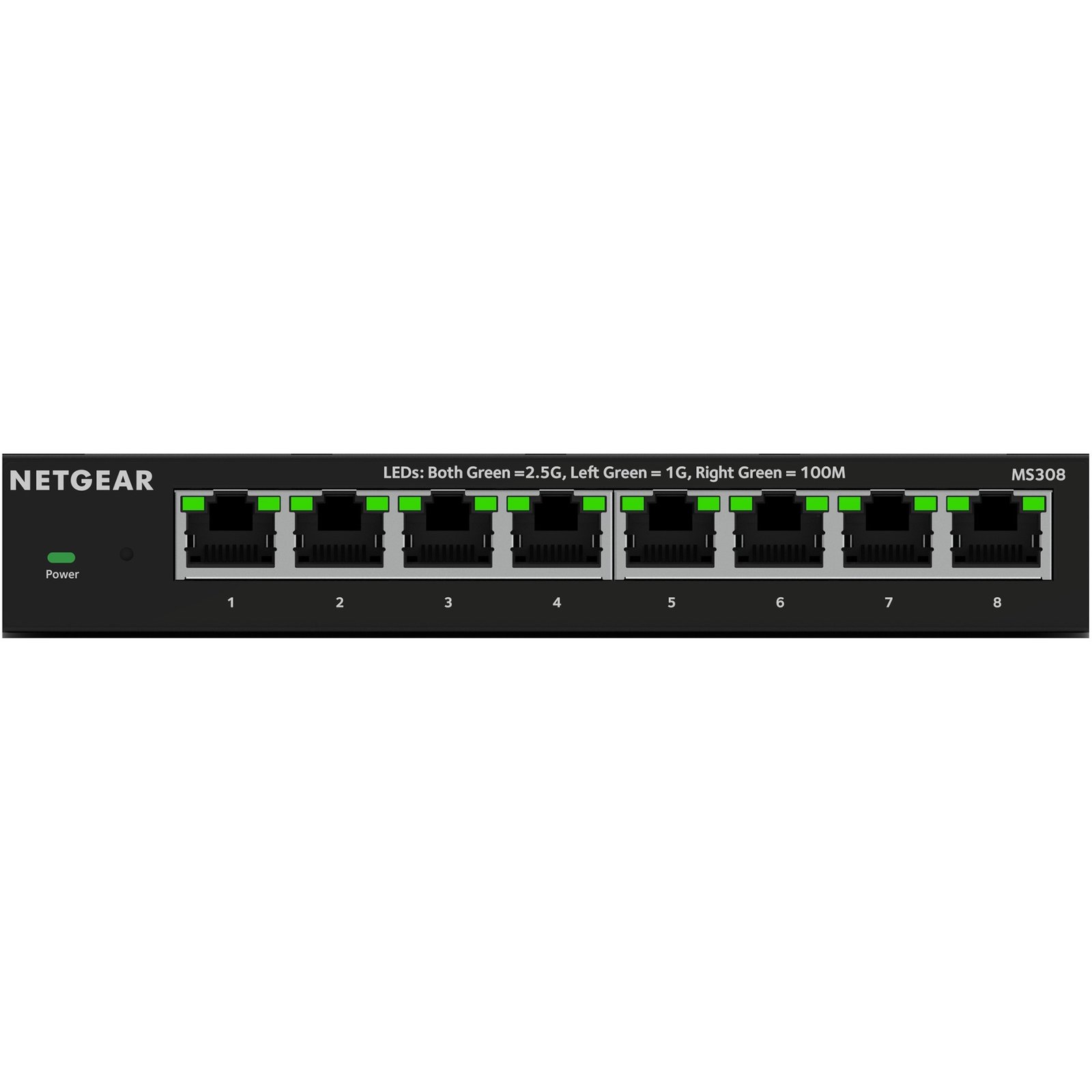 El switch no gestionado multigigabit MS308 de 8 puertos de NETGEAR 2.5G proporciona a las empresas una solución rentable para actualizar sus redes a velocidades de varios gigas. El conmutador MS308 Multi-Gigabit Ethernet cuenta con ocho (8) puertos 2.5G en metal resistente y está diseñado para brindar versatilidad. Se puede colocar sobre un escritorio, contra una pared o debajo de una mesa con el kit incluido.