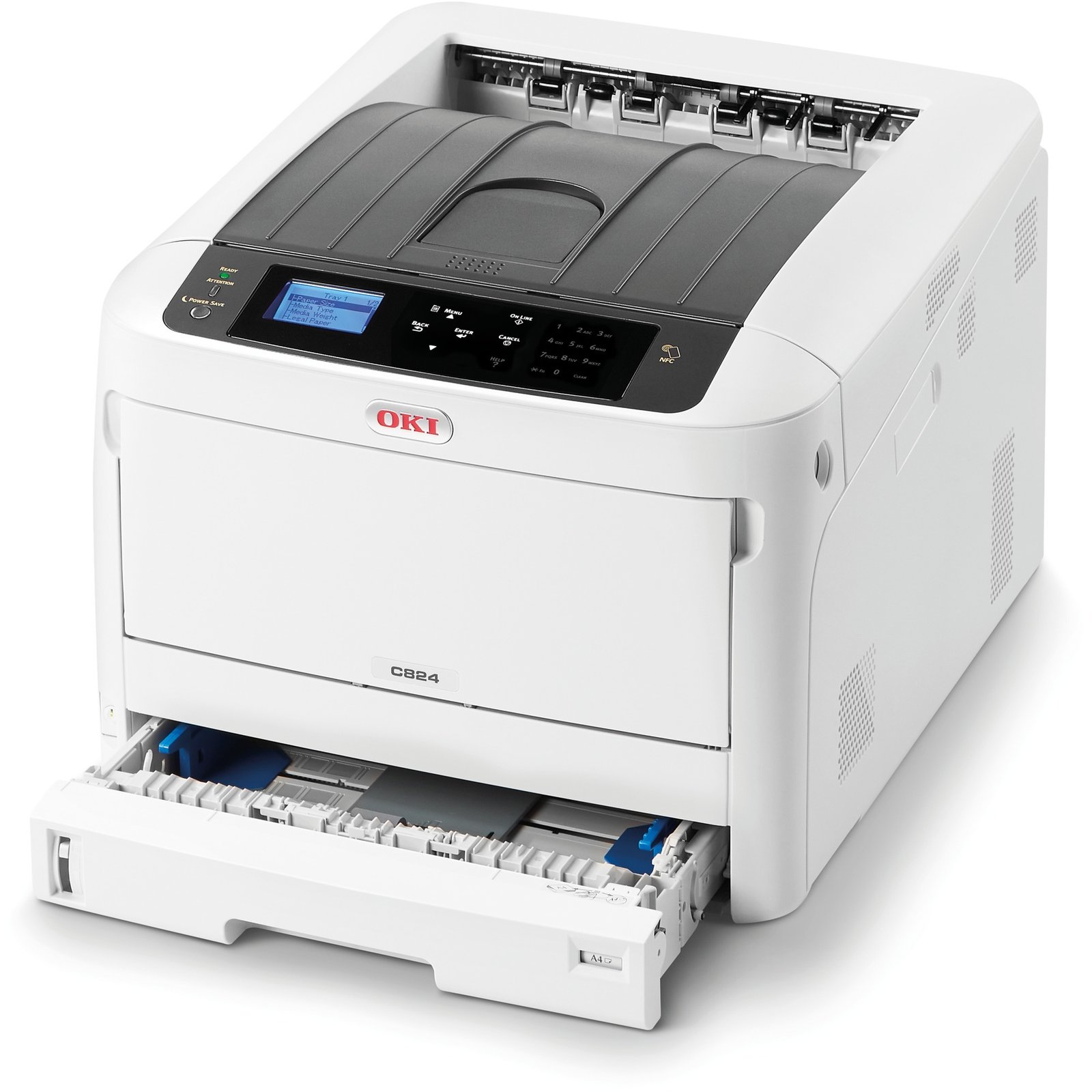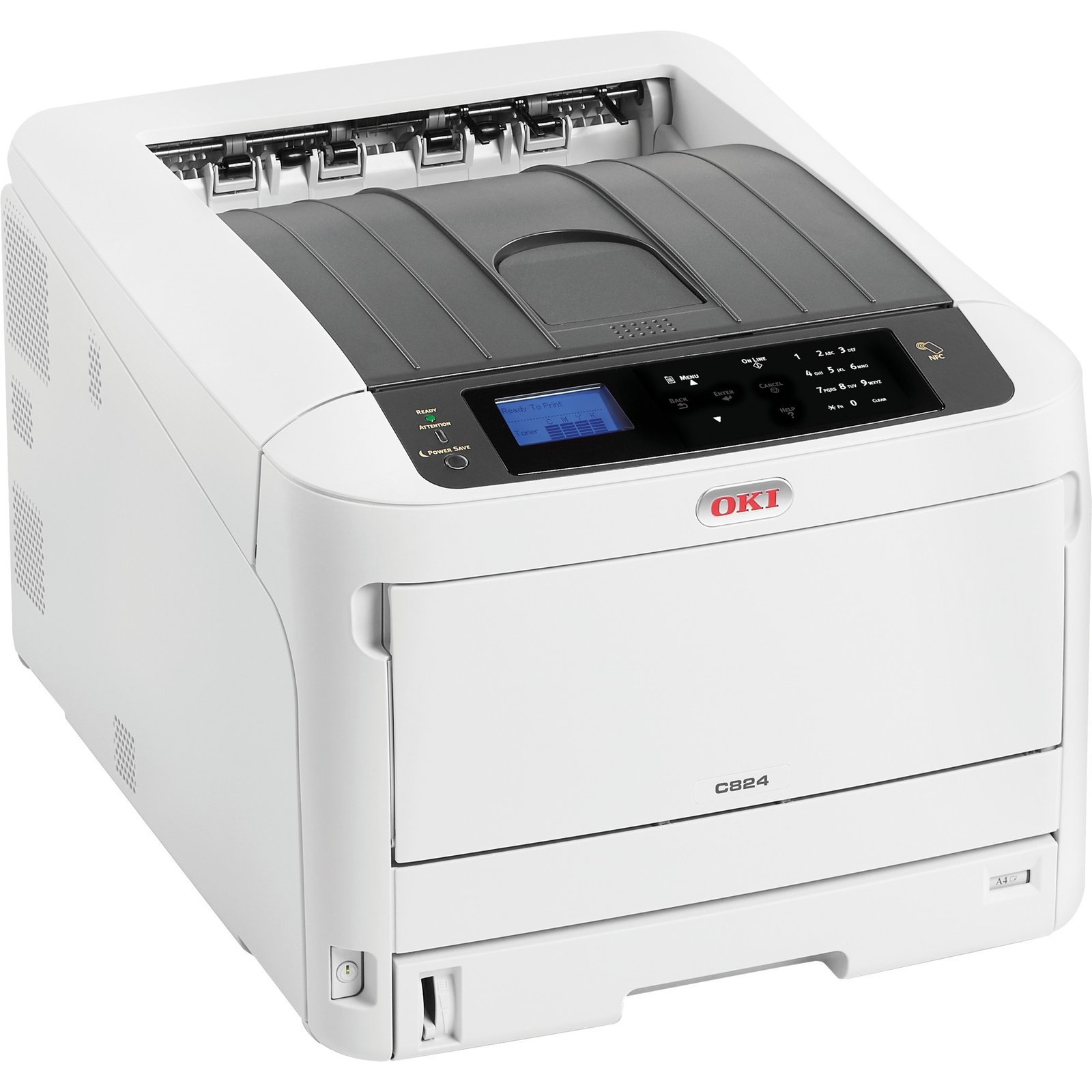 Der C824dn druckt in hoher Qualität und bis zur Größe DIN A3. Dieser Farb-LED-Drucker beansprucht trotz seiner Unterstützung für große Druckmedien erstaunlich wenig Stellfläche und ist mit einer Druckleistung von bis zu 26 Seiten DIN A4 pro Minute und 14 Seiten DIN A3 pro Minute ein starker Partner im hektischen Büroalltag. Dabei lässt er sich per LAN-Schnittstelle leicht in ein bestehendes Netzwerk integrieren und verfügt über die praktische Tap-and-Print NFC-Funktiom zum schnellen Direktdruck von Mobilgeräten. Dank der breiten Unterstützung verschiedenster Druckmedien liefert der C824dn hochwertige Ergebnisse für die unterschiedlichsten Anwendungszwecke. Die integrierte Duplex-Druckfunktion hilft dabei mit automatischem, beidseitigen Druck beim Papiersparen.