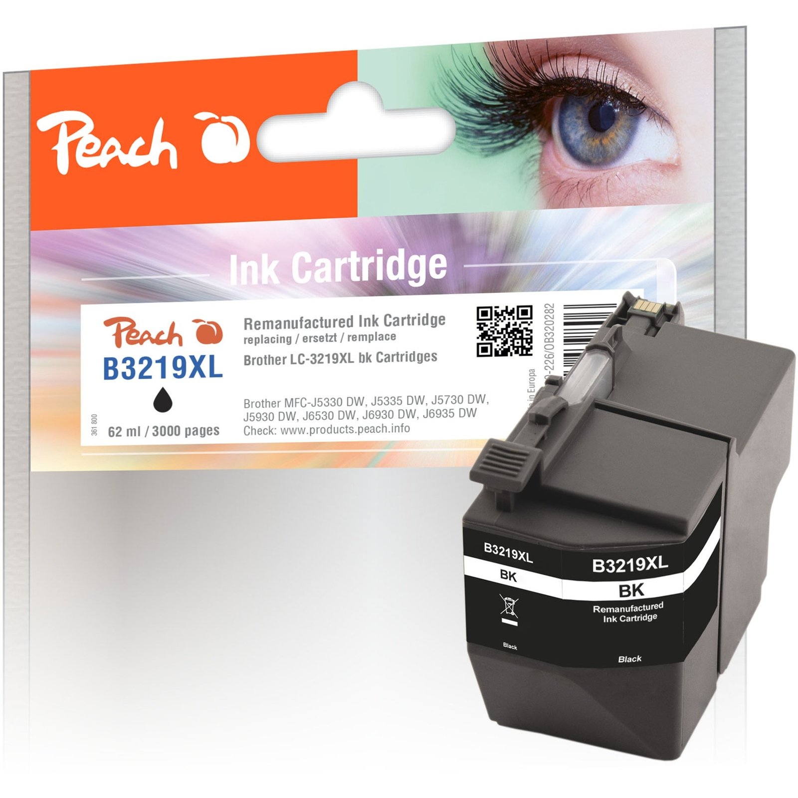 La tinta PEACH PI500-226 (negro) es compatible con la tinta Brother LC-3219XLBK. Este cartucho contiene 62 ml de tinta y es compatible con varias impresoras de la serie MFCJ.