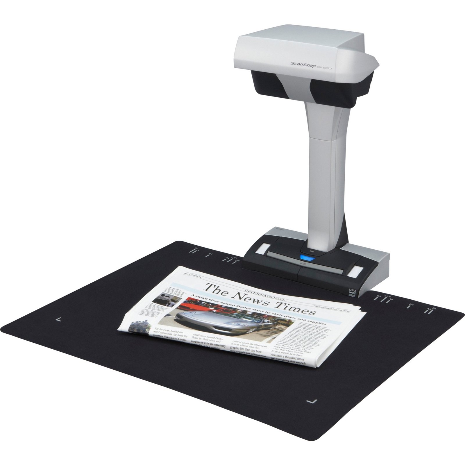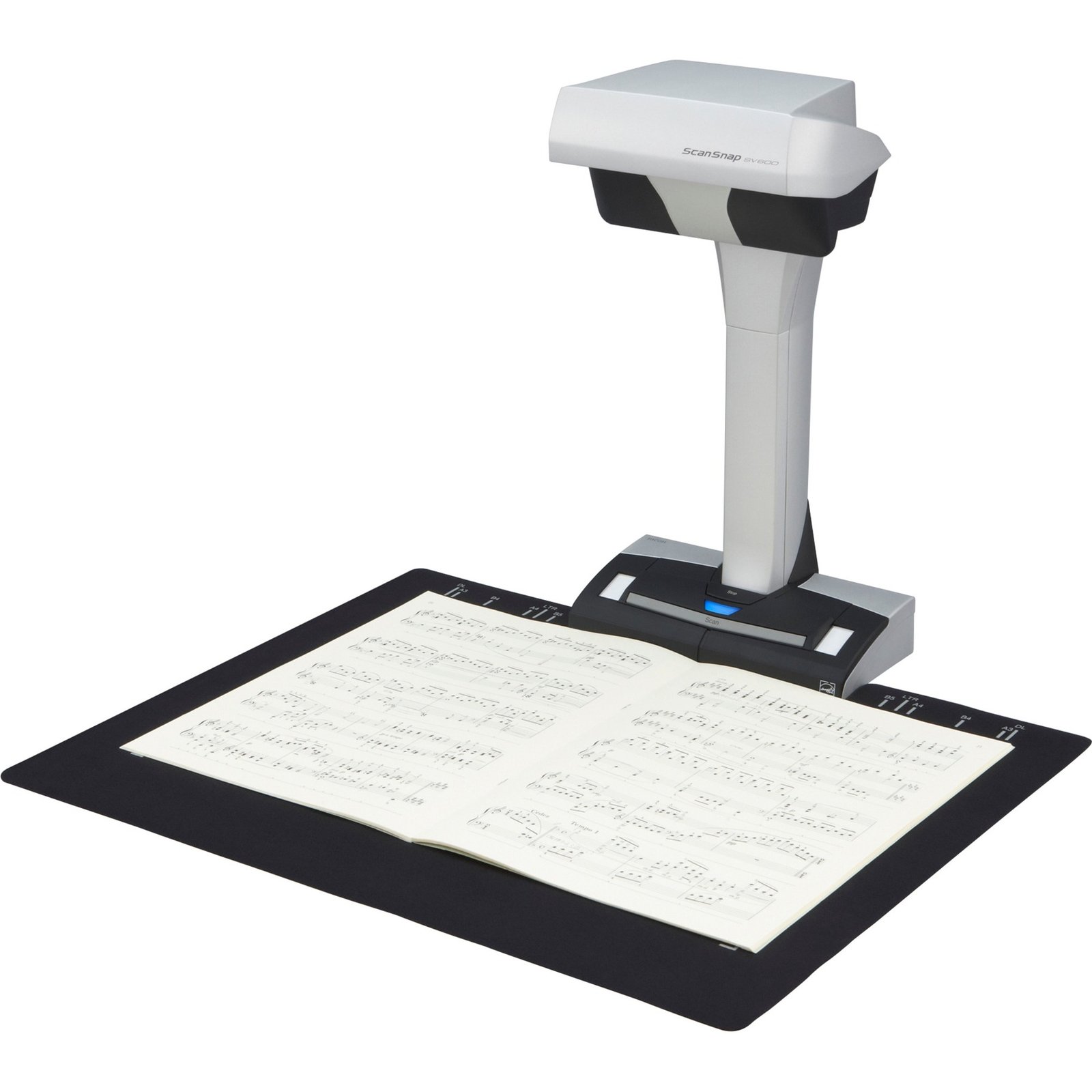 El escáner aéreo Fujitsu ScanSnap SV600 ofrece una amplia versatilidad y eficiencia digital con solo pulsar un botón. Se puede utilizar para escanear cualquier documento hasta formato A3, hojas planas y libros encuadernados. El SV600 corrige automáticamente la distorsión y la curvatura de documentos encuadernados de hasta 30 mm de grosor. El escaneo sin contacto protege los documentos confidenciales y garantiza la mejor legibilidad con la tecnología VI. Con el recorte múltiple, puede escanear varios documentos, recortarlos y guardarlos en el mismo archivo. La “detección de cambio de página” y el “escaneo controlado por tiempo” permiten el escaneo ininterrumpido de diferentes formatos de documentos.