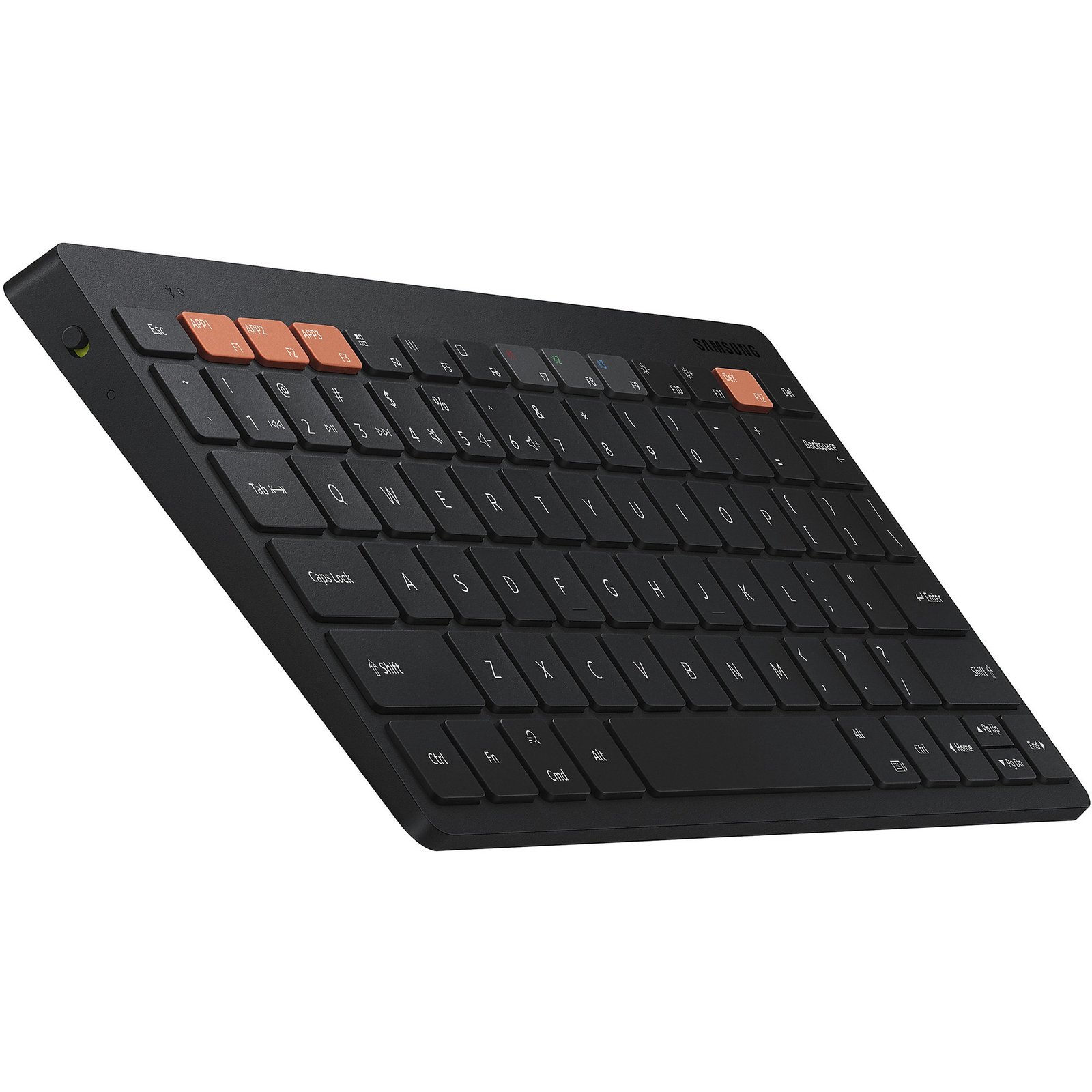 El Samsung Smart Keyboard Trio 500 es el compañero perfecto para la multitarea. Se conecta a hasta tres dispositivos diferentes a la vez, lo que ofrece una amplia compatibilidad y un fácil emparejamiento. Un clic es todo lo que se necesita para cambiar entre teléfonos inteligentes, tabletas y otros dispositivos Bluetooth emparejados. Compacto, elegante y con un diseño de buen gusto, pero repleto de funciones para un alto rendimiento, el teclado inteligente inalámbrico Trio 500 ofrece una experiencia de escritura cómoda dondequiera que esté. Con tres teclas de acceso rápido, puede acceder a las aplicaciones favoritas vinculadas con un solo clic, y con Samsung DeX, puede trabajar con el Smart Keyboard Trio 500 de manera tan productiva como en una PC de escritorio, en cualquier momento y en cualquier lugar.