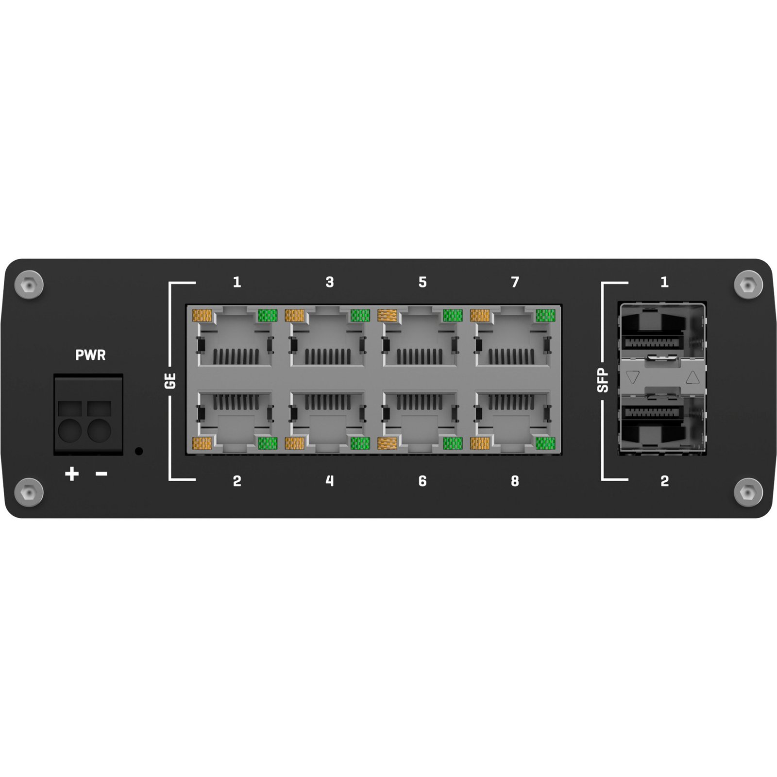 TSW210 ist ein unverwalteter industrieller Ethernet-Switch, ausgerüstet mit 2 SFP-Anschlüssen für Glasfaserkommunikation mit großer Reichweite und 8 Gigabit-Ethernet-Anschlüssen mit bis zu 1000 Mbps Download-/Upload-Geschwindigkeit. Sein haltbares, robustes Aluminiumgehäuse, ausgerüstet mit DIN-Schienen- und Anbaumöglichkeiten, macht den TSW210 perfekt für industrielle Umgebungen. Er ist perfekt geeignet für professionelle Anwendungen bei hoher Bandbreite für eine zuverlässige Datenverbindung in industriellen Ethernet-Netzwerken.