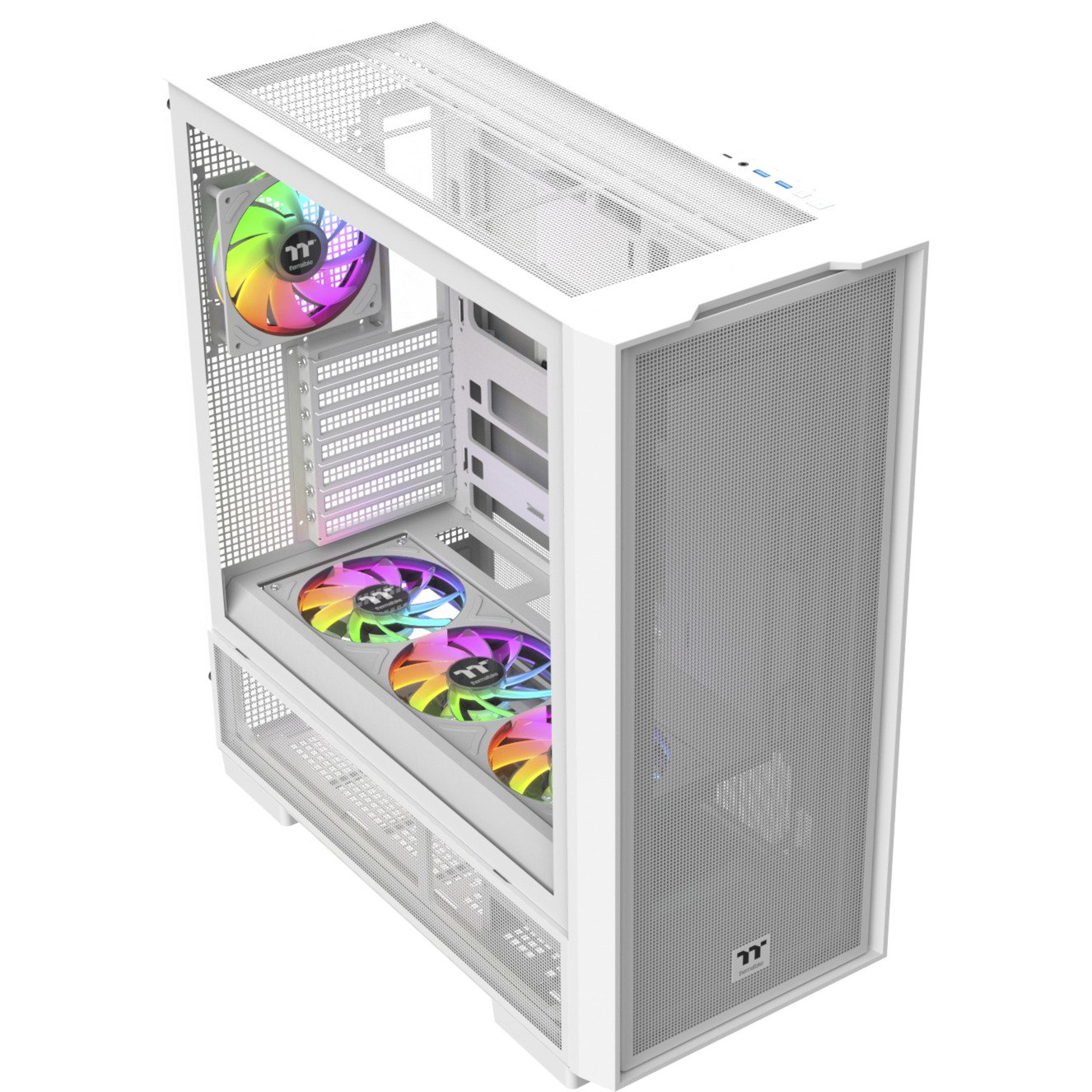 Das Thermaltake S380 ARGB ist ein modernes und robustes PC-Gehäuse, das speziell für Gamer und PC-Enthusiasten entwickelt wurde. Es besticht durch sein elegantes Design mit einem hochwertigen, gehärteten Glas-Panel, das den Blick auf die verbaute Hardware frei gibt und dank integrierter ARGB-Beleuchtung für beeindruckende Lichteffekte sorgt. Mit großzügigem Innenraum bietet das S380 ARGB viel Platz für leistungsstarke Komponenten, einschließlich großer Grafikkarten und umfangreicher Kühlungslösungen. Die ausgeklügelte Luftzirkulation unterstützt eine optimale Wärmeableitung, sodass Ihr System auch unter hoher Belastung kühl und stabil bleibt. Zusätzlich überzeugt das Gehäuse mit praktischen Features wie einem werkzeuglosen Laufwerksschacht, flexiblen Montageoptionen und einem gut strukturierten Kabelmanagement, das den Aufbau erleichtert und für einen aufgeräumten Innenraum sorgt.