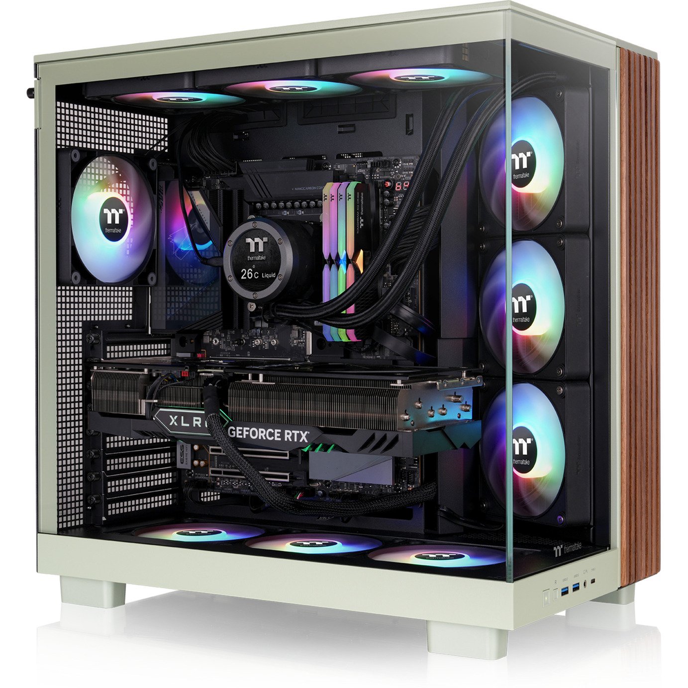 Das View 380 XL WS ARGB Mid-Tower-Gehäuse wurde für Motherboards der nächsten Generation entwickelt und verfügt über ein spezielles Design, das sowohl Standard-Motherboards als auch Motherboards mit versteckten Anschlüssen von ASUS, MSI und GIGABYTE unterstützt. Das Zweikammerdesign bietet mehr Bauraum, verbessertes Kabelmanagement und erhöhte Luftzirkulation für mehr Anpassungsfähigkeit. Das View 380 XL WS ARGB Mid-Tower-Gehäuse bietet eine verbesserte Sichtbarkeit mit gehärtetem Glas auf der Vorderseite und der linken Seite, so dass der Benutzer sein System in Szene setzen kann. Für eine gute Kühlung können User einen 360-mm-Radiator in der Oberseite und der Motherboard-Seite platzieren. Das Gehäuse verfügt über drei hydraulisch gelagerte 120-mm-ARGB-Lite-Umkehrlüfter an der Mainboard-Seite und einen hydraulisch gelagerten 120-mm-ARGB-Lite-Lüfter an der Rückseite. Die faszinierenden Lichteffekte können über die Motherboard-Software von ASUS, GIGABYTE, MSI und ASRock gesteuert werden. Die integrierte GPU-Halterung verhindert das Durchhängen der Grafikkarte und bietet zusätzlichen Halt. Das View 380 XL WS ARGB Mid-Tower-Gehäuse bietet gute Erweiterungsmöglichkeiten. Es kann einen CPU-Kühler mit einer maximalen Höhe von 160 mm, eine GPU-Platzierung mit bis zu 420 mm Länge und ein Netzteil mit bis zu 180 mm Länge unterstützen. Das Gehäuse ist für eine hervorragende Kühlleistung optimiert und wird mit vier hydraulisch gelagerten 120-mm-ARGB-Lite-Lüftern geliefert, wobei bis zu zehn 120-mm-Lüfter installiert werden können. Was die Speicherkompatibilität betrifft, so bietet das View 380 XL WS ARGB Mid-Tower-Gehäuse maximale Unterstützung für insgesamt bis zu drei 2,5-Zoll-SSDs oder eine 3,5-Zoll-HDD. Die unteren I/O-Anschlüsse umfassen zwei USB 3.0-Anschlüsse, einen USB 3.2 Gen 2 Typ-C-Anschluss und einen HD-Audio-Anschluss, die einen bequemen Zugriff ermöglichen, wenn das PC-Gehäuse auf einem Schreibtisch steht.