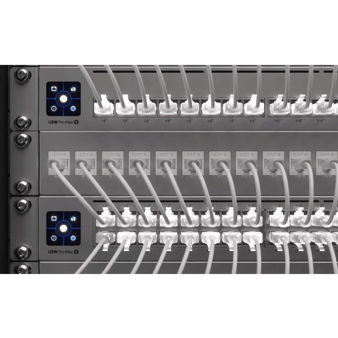 El cable de conexión UniFi Etherlighting de Ubiquiti es un cable de conexión nanodelgado con una funda transparente que exhibe efectos de iluminación etherlight cuando se conecta a los conmutadores Pro Max. El conector RJ-45 transparente garantiza un brillo óptimo de la iluminación Etherlighting.