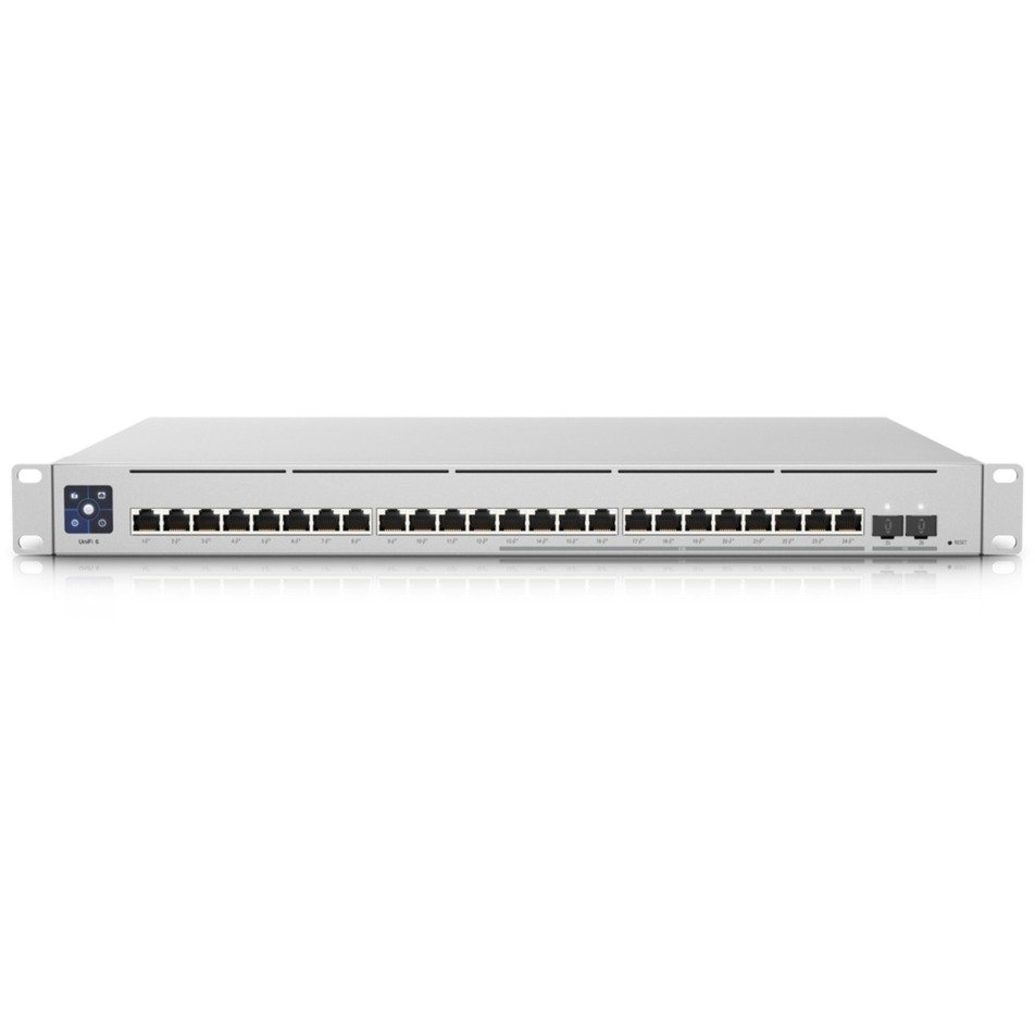 El USW Enterprise 24 POE Switch es un switch multigigabit de capa 3 totalmente administrado con (12) puertos RJ45 GbE, (12) puertos RJ45 de 2,5 GbE y (2) puertos SFP+ 10G. Este conmutador se puede supervisar o configurar desde cualquier lugar utilizando la potente e intuitiva aplicación web UniFi Network y la aplicación móvil.