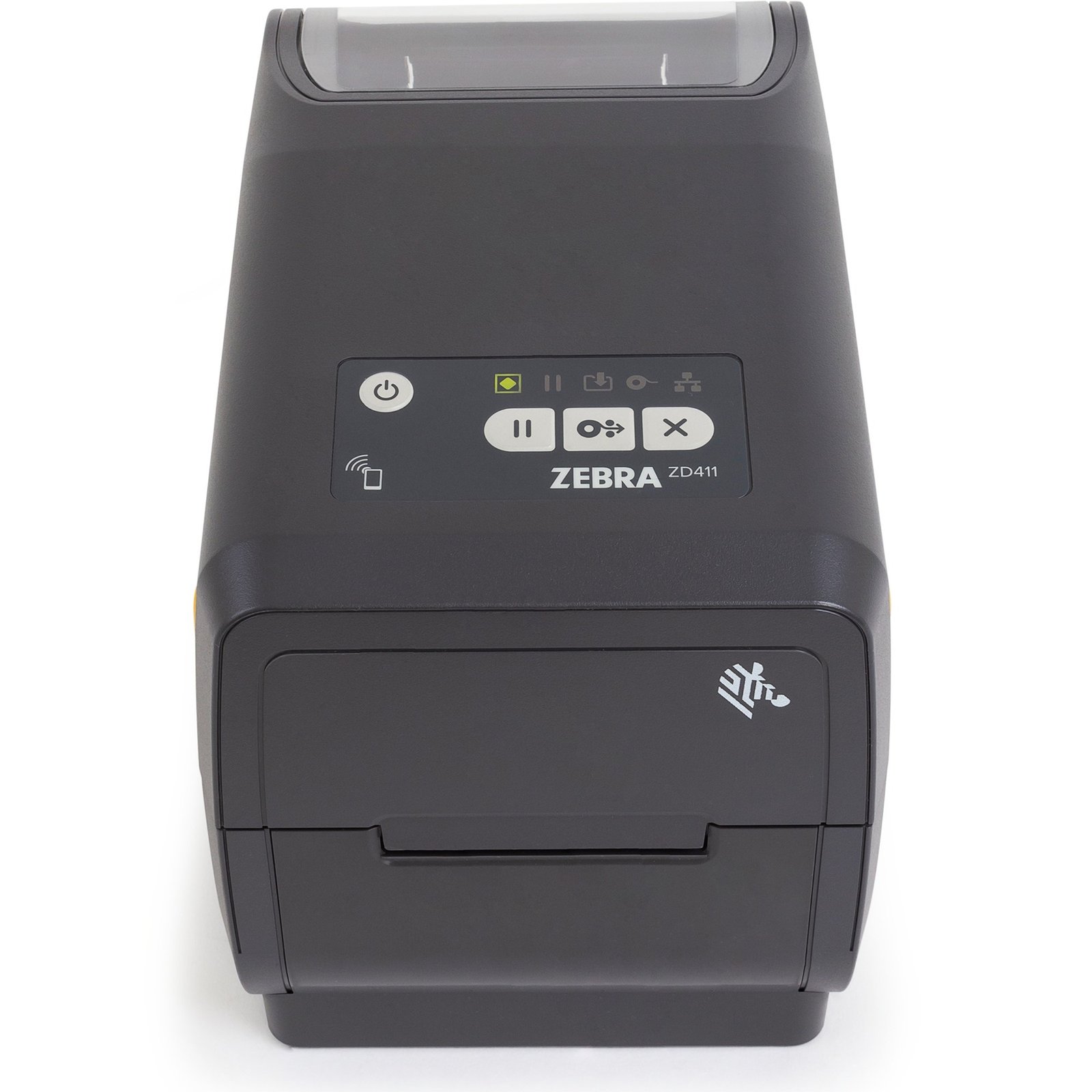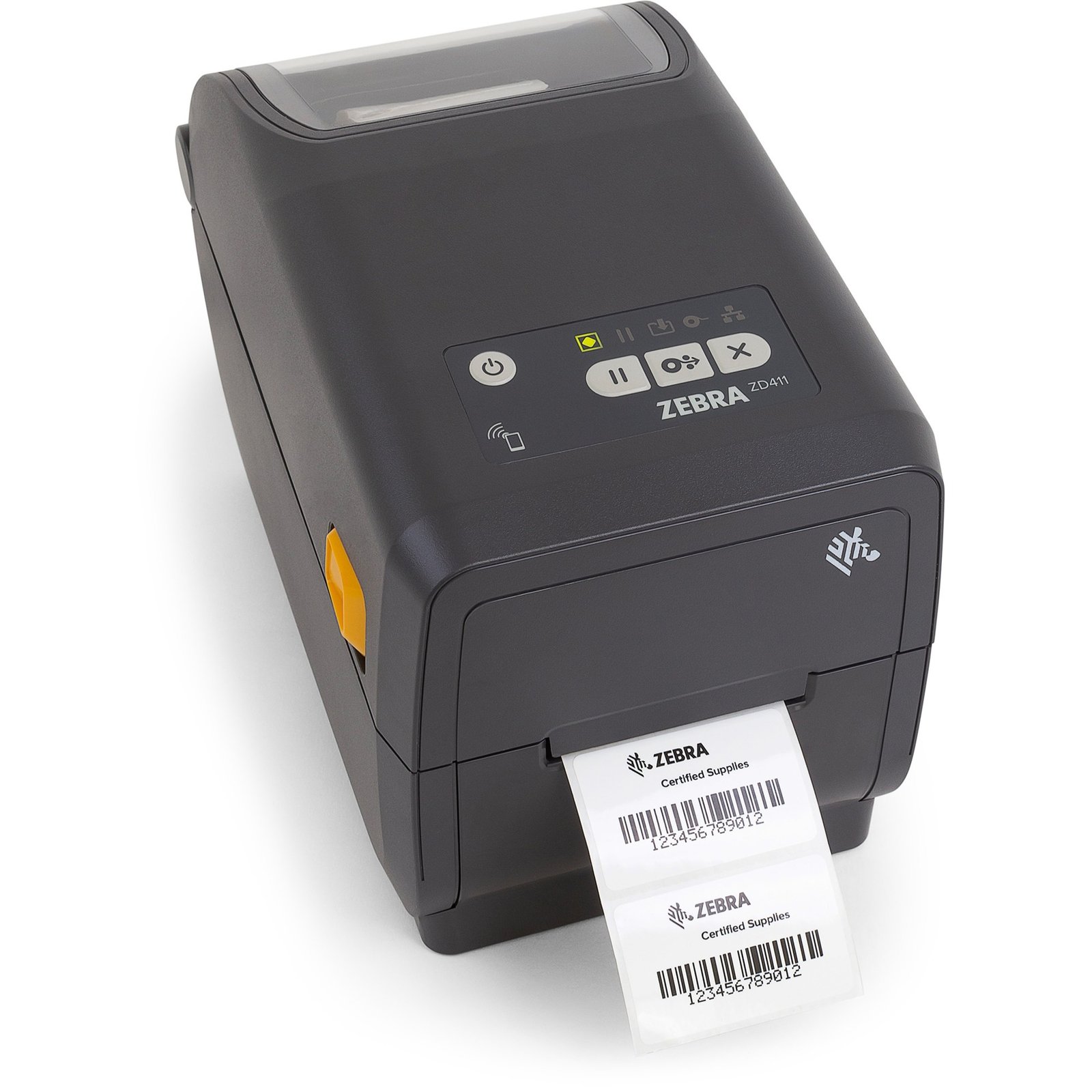 La ZD411t es una impresora de recibos para entornos POS, que se puede configurar en casi cualquier lugar debido a sus dimensiones extremadamente compactas. Esta versión con impresión de 203 ppp y transferencia térmica tiene una interfaz USB e imprime a una velocidad de hasta 152 milímetros por segundo. La impresora también se puede montar en una pared.